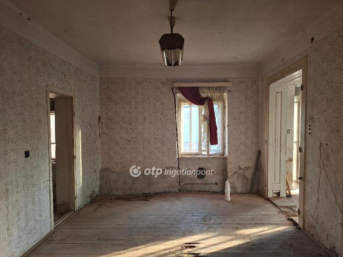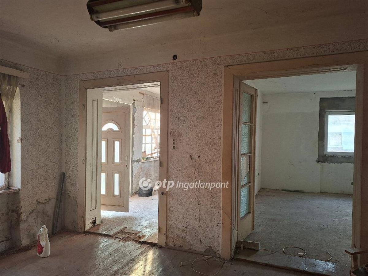 A 90 nm-es családi házban nappali-étkező, 2 szoba, tágas előszoba, konyha, kamra, közlekedő, külön fürdőszoba és wc helyiségek vannak kialakítva. Fűtés nincs, de a korábbi gázkonvektorok leágazásai rendelkezésre állnak, így a készülékek visszahelyezésével gyorsan megoldható. Az utcai nagy szoba és az előszoba betonozott, az utcai ablakok és a bejárati ajtó új, műanyag, hőszigetelt. a tágas, napfényes ház jelenleg teljesen felújítandó állapotú. Minden helyiségben a padozat kialakítása, a falak vakolása indokolt. Víz-, villany-, és gáz szolgáltatás rendben, a városi csatornarendszerre azonban nincs rákötve, ez a feladat az új tulajdonosra vár.