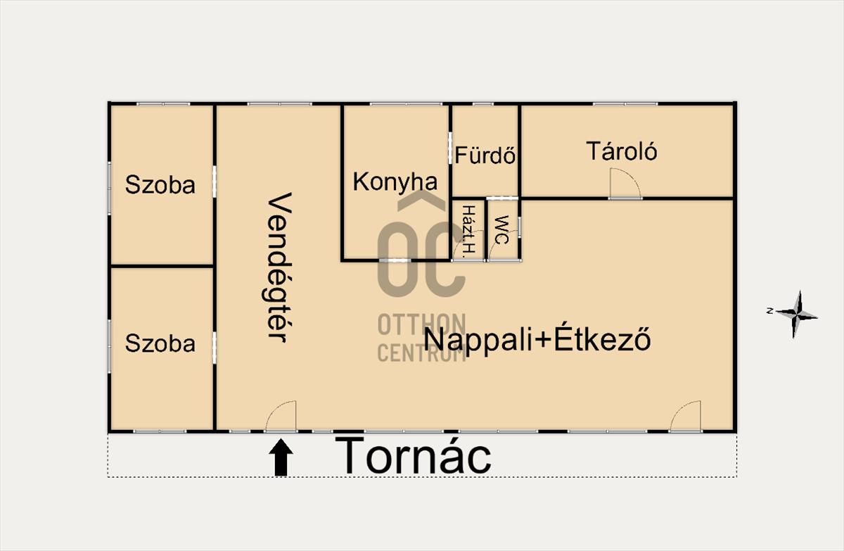 * Az épület kettő szobát, egy hatalmas nappali+ étkezőt, egy tágas vendégteret, egy konyhát, egy fürdőt, egy WC-t, egy háztartási helyiséget, valamint egy tárolót foglal magába.
