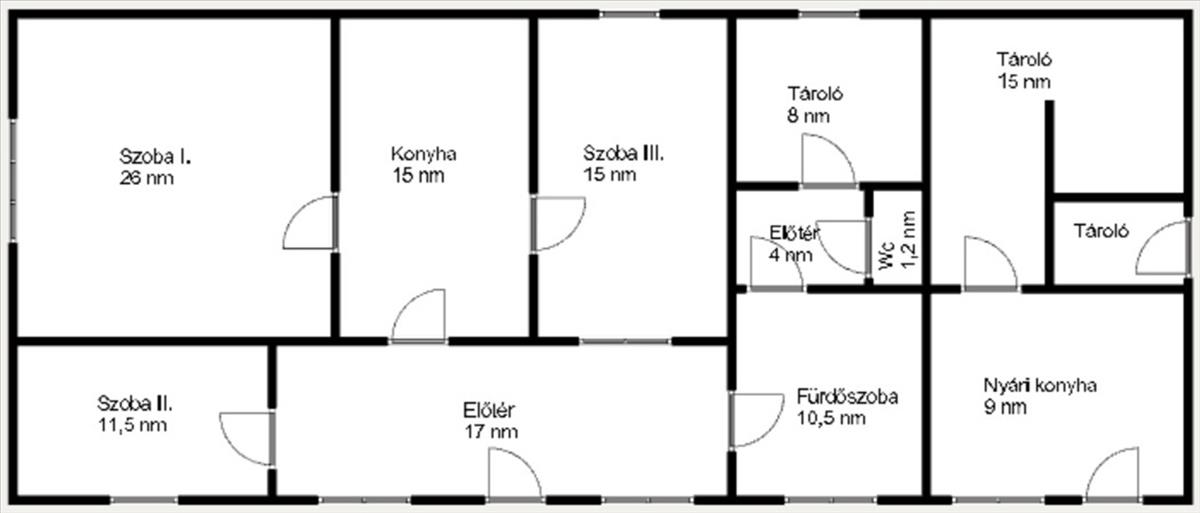 - Nyári konyha, tárolóval a ház végében, közművekkel ellátott. Külön bejárattal itt
