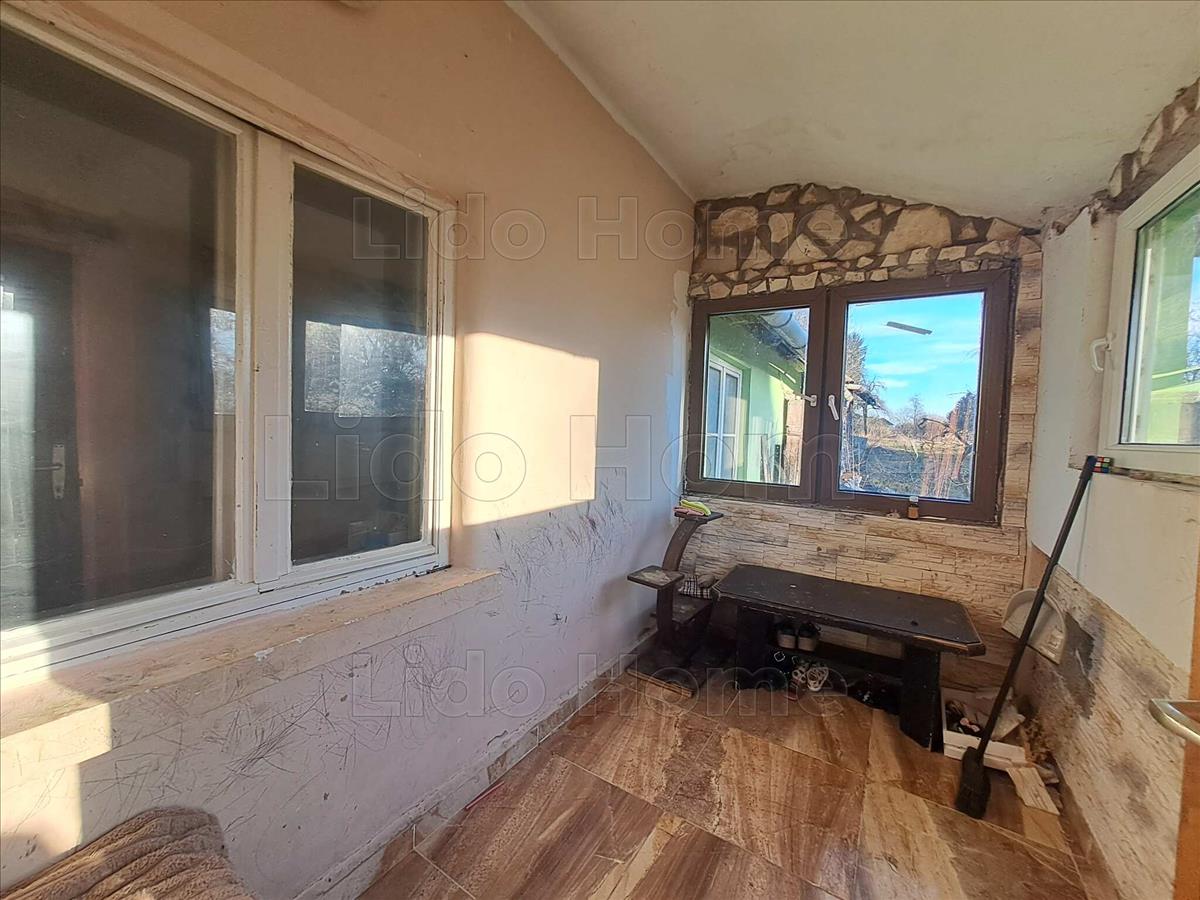 A ház elosztása praktikus: két szoba, nappali, előszoba, konyha és fürdőszoba található benne. a helyiségek burkolata járólap vagy laminált padló, a nyílászárók nagy része műanyag. a közművek közül víz és villany be van vezetve, a tetőre nemrég új cserepeslemez került. a fűtés jelenleg kályhával megoldható, három kémény is rendelkezésre áll.