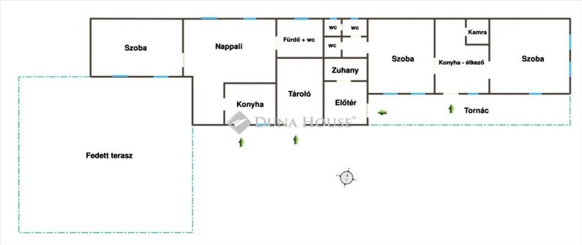 A két különálló bejárattal rendelkező lakrészekben összesen öt szoba található, így akár nagycsaládosok számára, akár kétgenerációs otthonnak is ideális választás lehet. a fűtés gázkonvektorral megoldott.