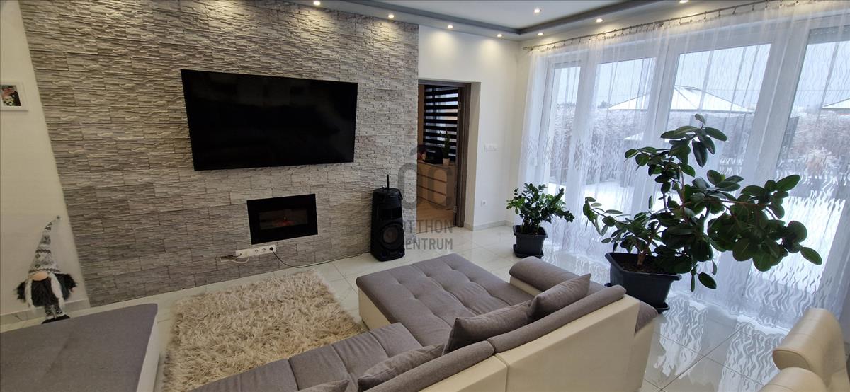 Mikepércs központjának közelében, új építésű házak között eladó egy 2022-ben épült, szinte új, nagyon szép állapotú, bruttó 132 m2-es, földszintes, nappali-amerikai konyha + 4 külön nyíló szobás, önálló, dupla komfortos családi ház, 800 m2 -es parkosított telken, 24 m2-es (6x4 m) beton alapra épült könnyűszerkezetes garázzsal.