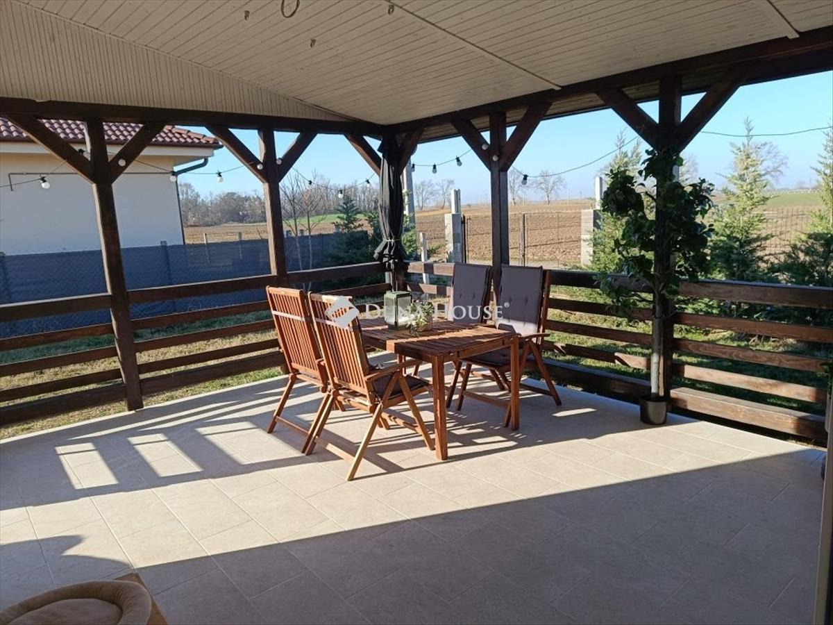 88 nm lakóterű, (+ 20 nm fedett terasz + 9 nm fedett terasz a bejáratnál) önálló családi ház eladó.