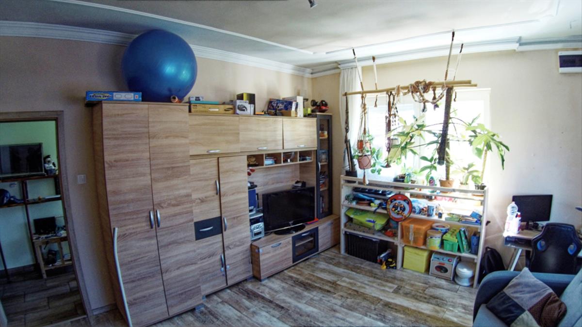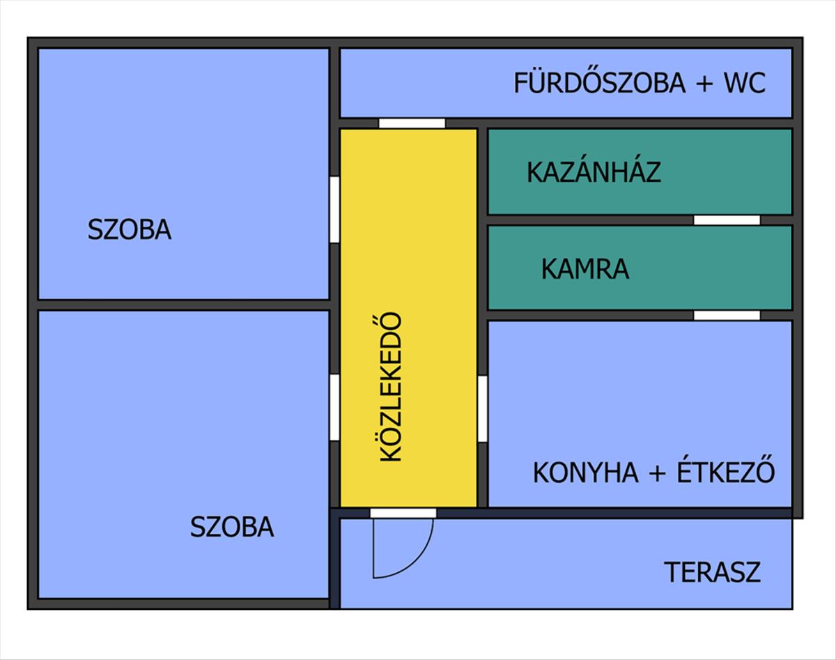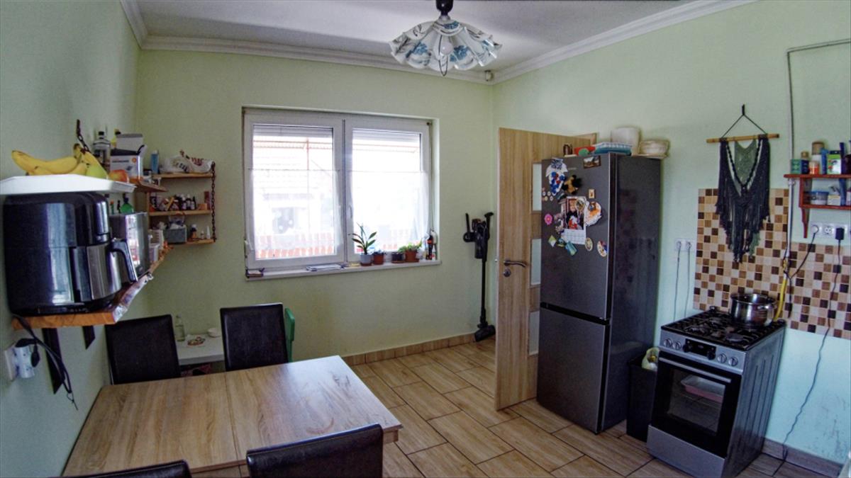 Helyiségek: 2 nagy szoba, konyha-étkező, folyosó, fürdőszoba, kazánház + spájz, 15 m² terasz (beépíthető)