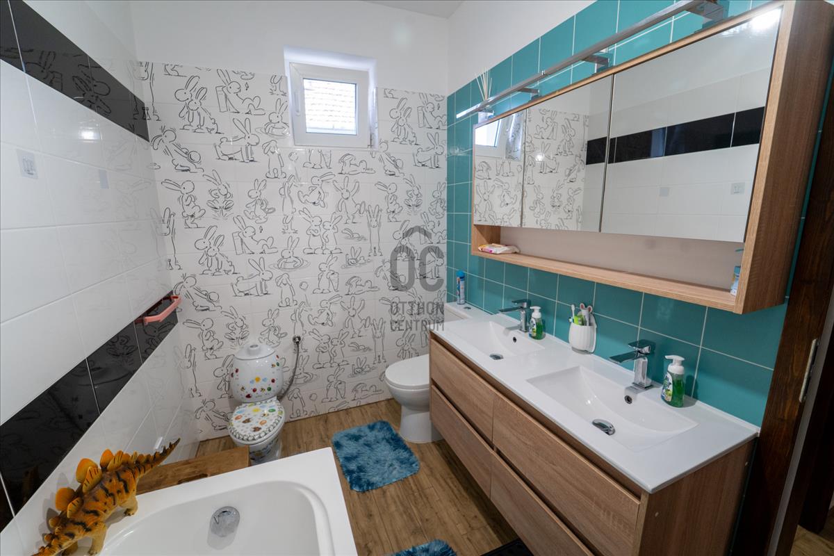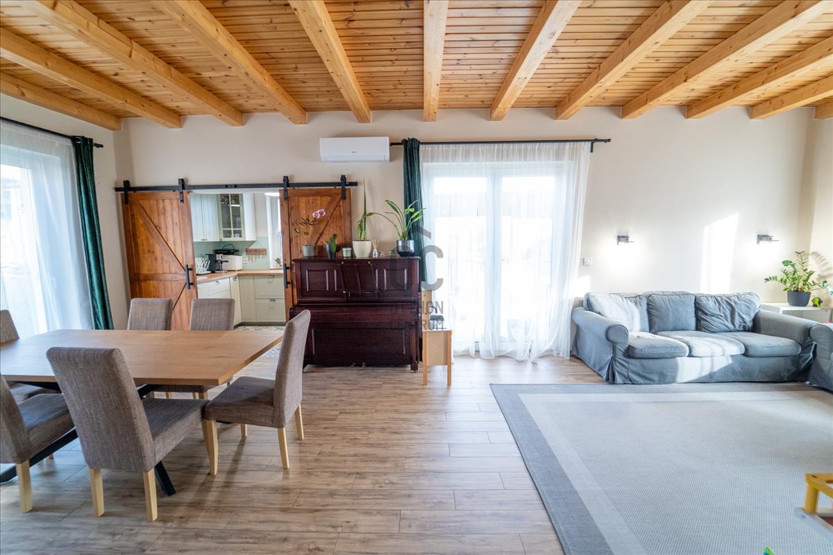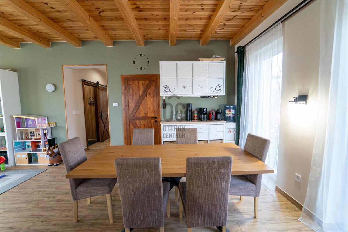 Az ingatlan étkezős-konyhás-nappalival, 4 szobával és 2 fürdőszobával 4 wc-vel rendelkezik, így rendkívűl ideális választás családok számára is. a tágas nappali világos és barátságos légkört teremt, amely tökéletes helyszíne a közös családi pillanatoknak. a ház prémium kivitelezésének köszönhetően nemcsak esztétikai élményt nyújt, hanem a fenntarthatóságra is nagy hangsúlyt fektet. Passzívház elvekhez közelinek tervezett otthonban gáz (cirko) fűtés és klímás hűtés biztosítja a kellemes hőmérsékletet egész évben.