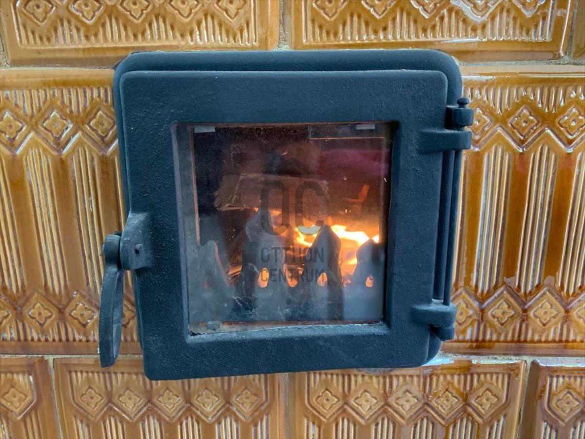 Cserépkályha a konyhában (átvezetéssel a kis hálószobába)