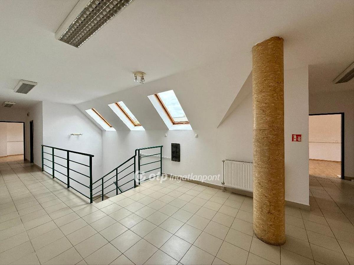 Az emeleti szinten további tágas, világos helyiségek sorakoznak, valamint két fürdőhelyiség: egy férfi mosdó, piszoárral és WC-vel, valamint egy női mosdó rész, külön WC-vel. Az épület kialakításából adódóan a felső és alsó szinten is található konyhasarok, ami különösen kényelmessé teszi az iroda vagy oktatási célú használatot. a belső terekben laminált parketta és világos, semleges burkolatok dominálnak, minden helyiség friss fehér tisztasági festést kapott, így az ingatlan azonnal költözhető vagy használatba vehető állapotban van.