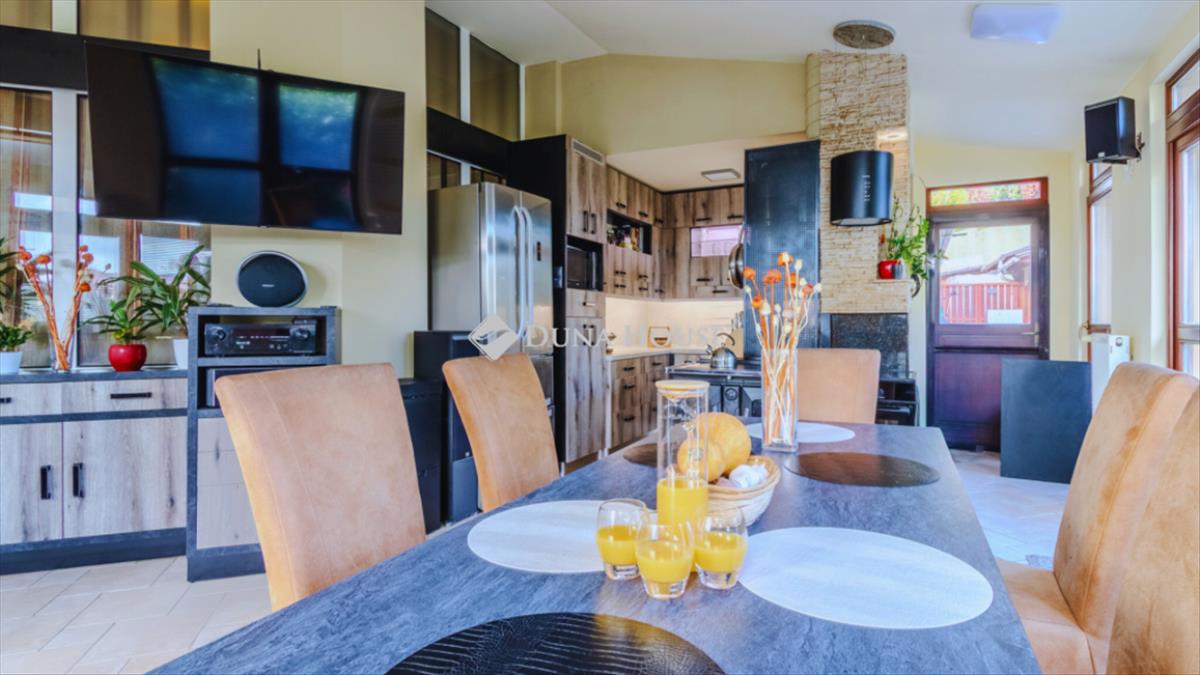 A kertkapcsolatos, beépített terasz saját aktív konyhával, étkezővel és pihenősarokkal rendelkezik, így az ingatlan két teljes értékű konyhával biztosít kényelmes életteret.
