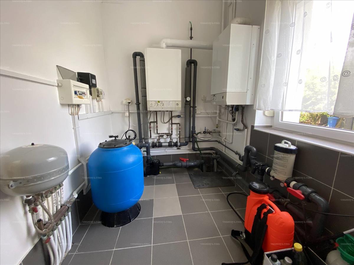 • Wellness area (84 sqm) with an 8x4 m, 1. 60 M deep heated pool. This is ensured by a gas boiler with a circulating pump, a filter system and a dehumidifier, which also functions as a heat pump. The interior height of the pool area is 2. 7 M.