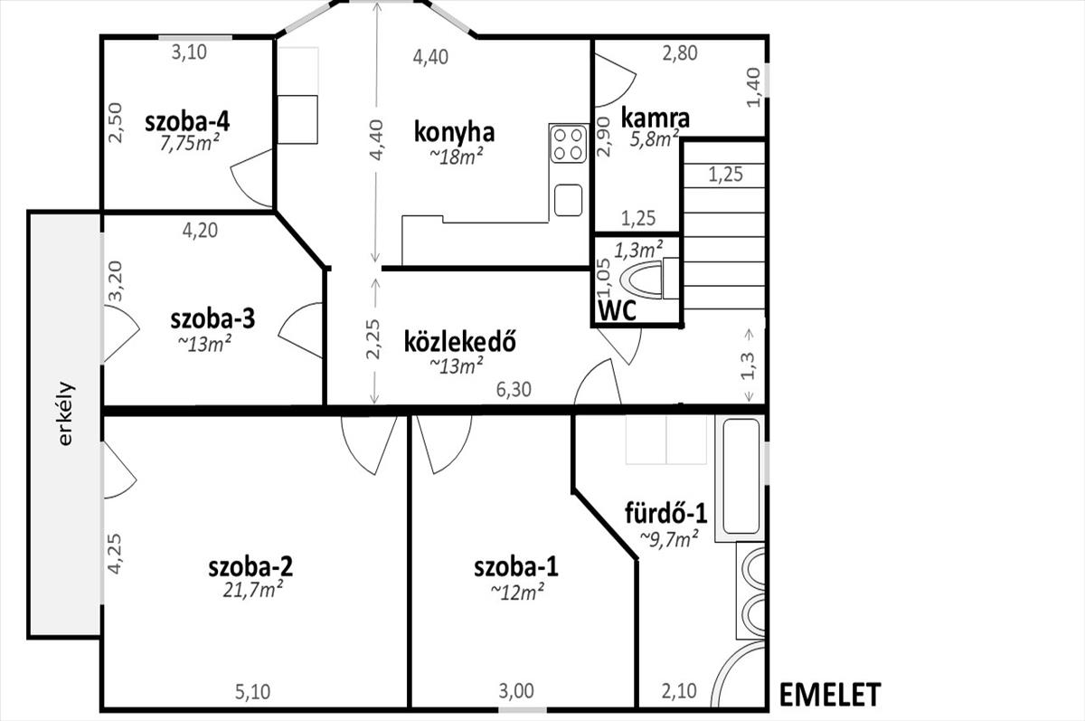 - Szobaszám:6 + 1 fél