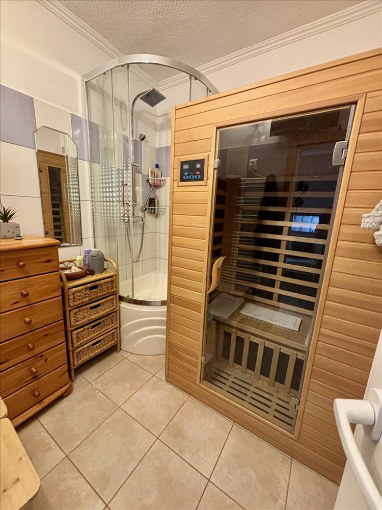 •fürdőszoba zuhanykabinnal, szaunával (a szauna megegyezés tárgyát képezi)