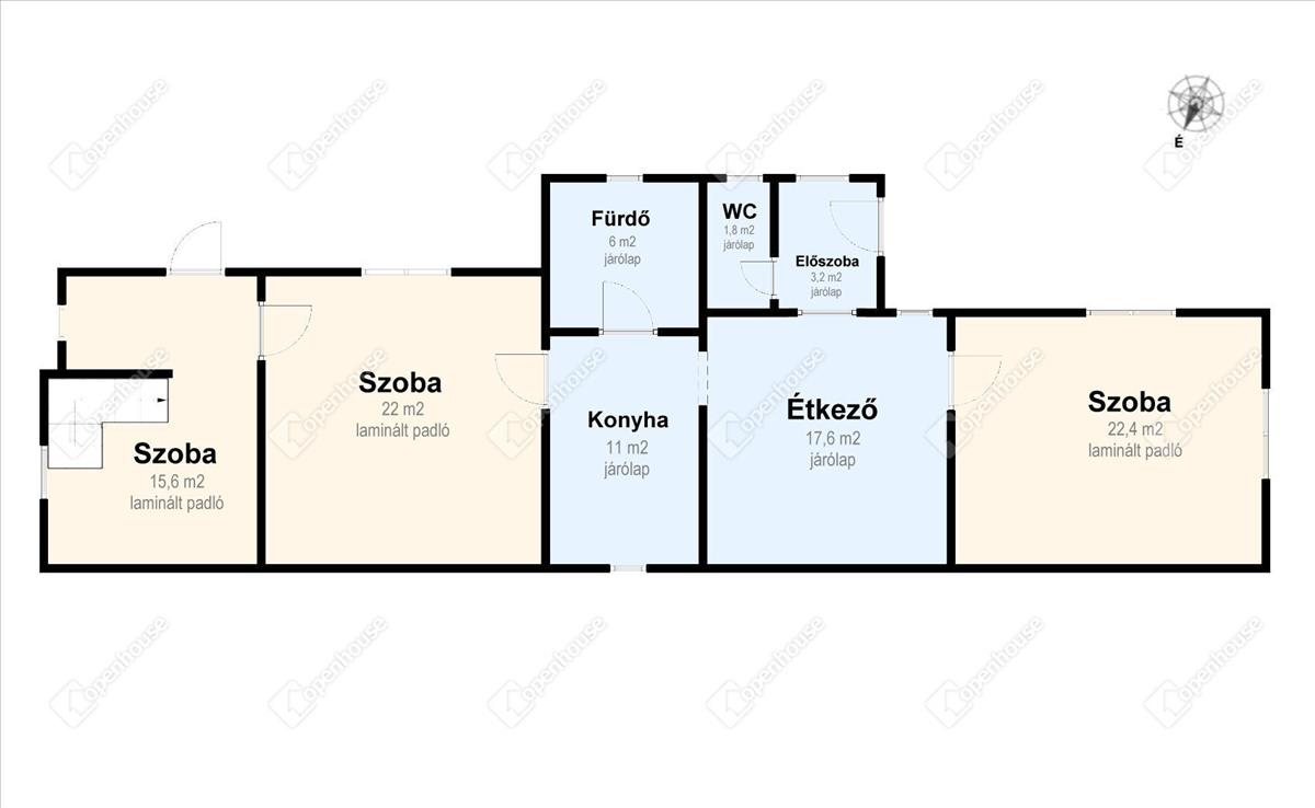 - a szobákat lamináltpadló borítja, a többi helyiséget pedig járólap
