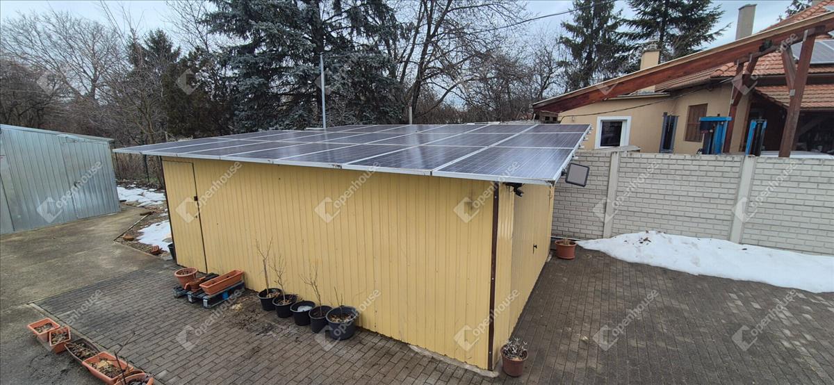 Dupla garázs, melynek tetején napkollektor található