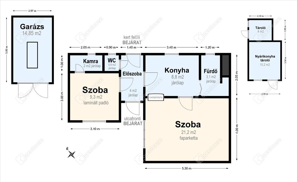 - két bejárattal is rendelkezik, az utcafronti ajtó műanyag