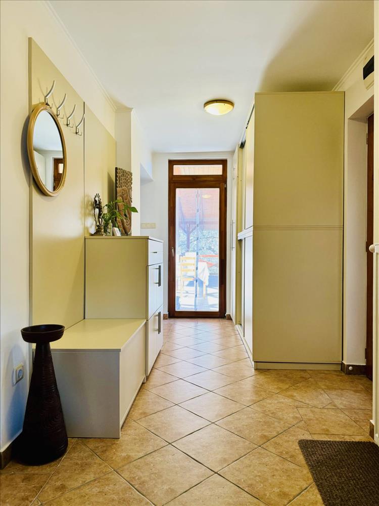 A világos és praktikus elrendezésű otthonhoz egy szép nagy, parkosított telek és egy két beállásos garázs tartozik, amely biztosítja az autók kényelmes parkolását.