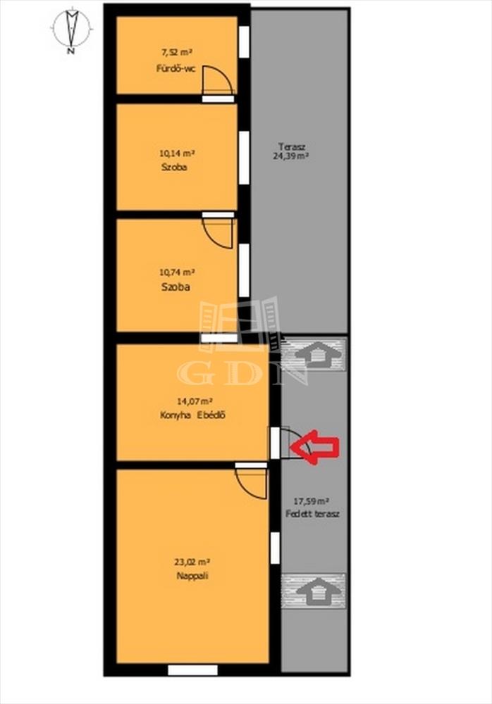 1+2 Félszoba, konyha-ebédlő, fürdőszoba.