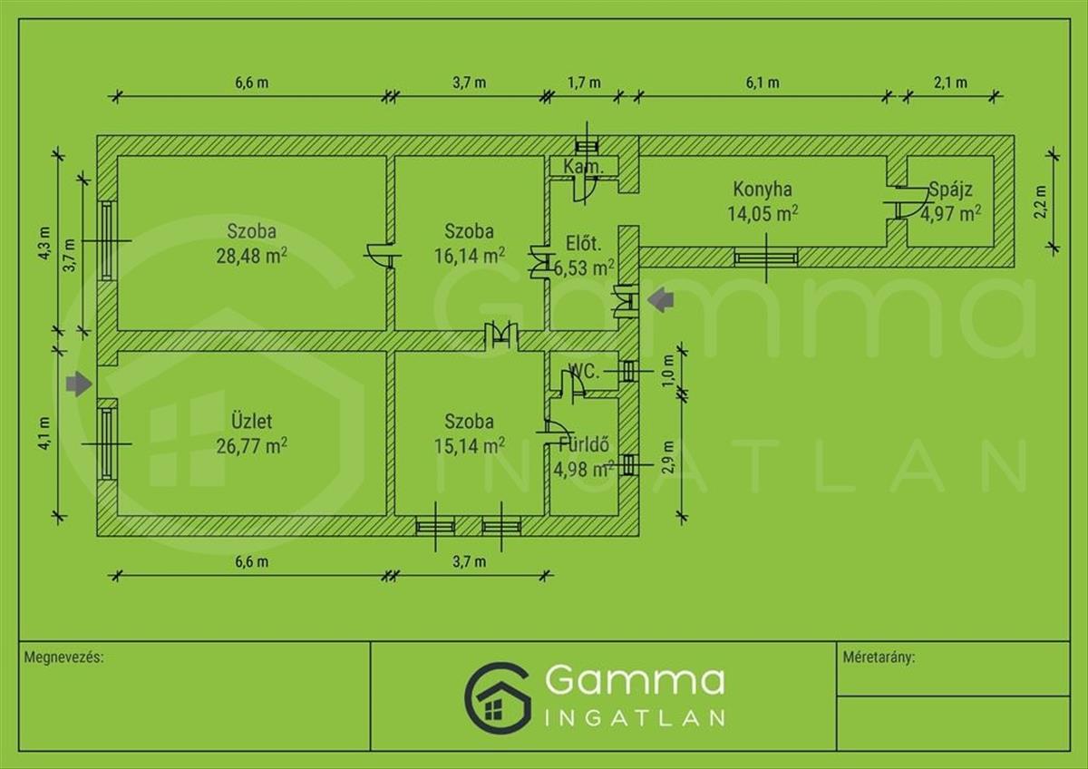 - Lehetőségek: Iroda, fodrászat, kisbolt vagy bemutatóterem kialakítására is alkalmas.