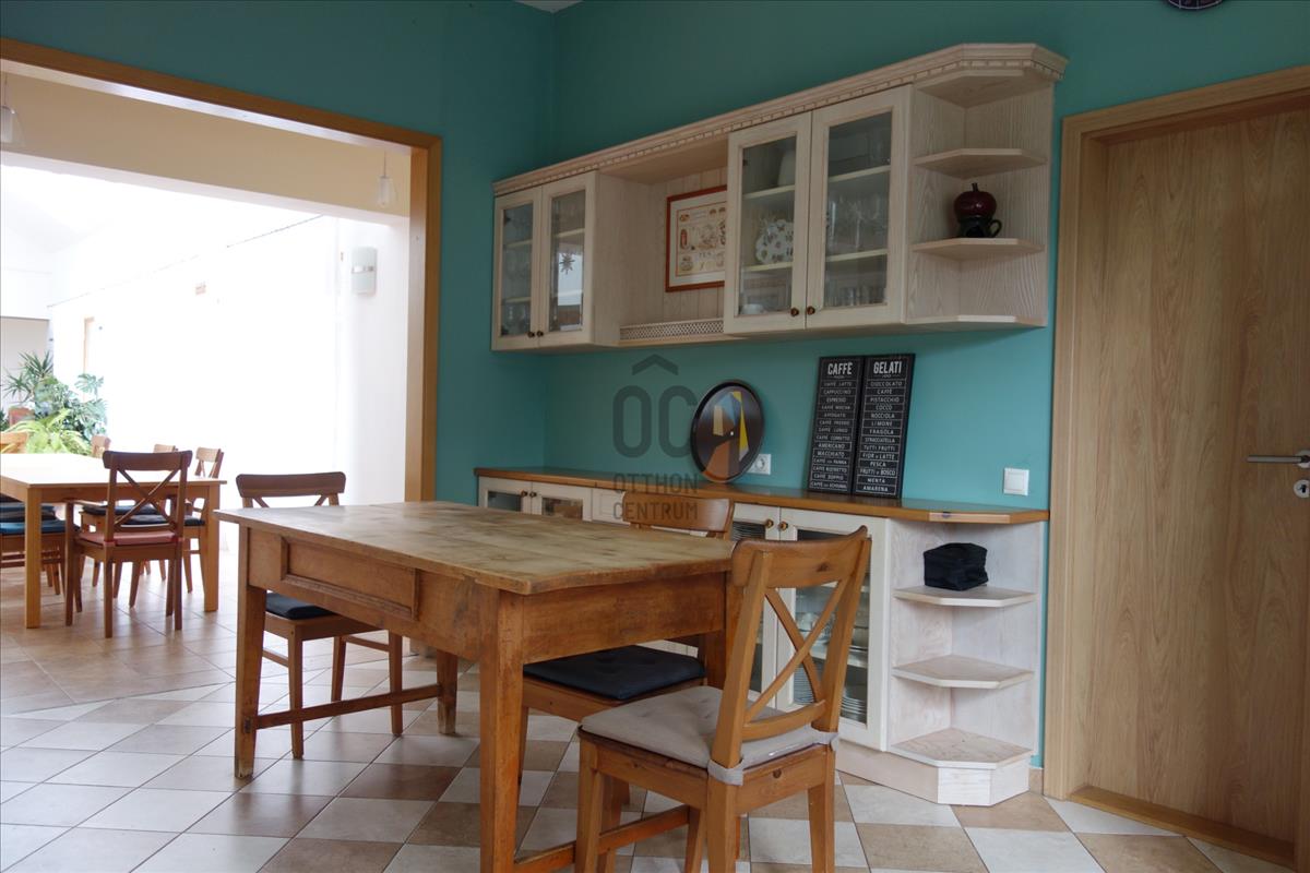 jelenleg étkező-közösségi tér, tetőablakai nyithatóak. a házban akár két különálló lakrész is kialakítható, külön bejárattal. Ennek előkészítése megtörtént, ehhez
