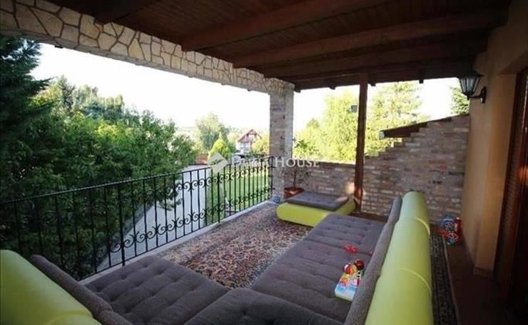 A közlekedőből egy gyönyörű, kovácsoltvas korláttal ellátott, kényelmes lépcsőn juthatunk fel a felső szintre. Itt két hatalmas szoba, egy fenti nappali egy fürdőszoba WC-vel lett kialakítva. a fenti rész legimpozánsabb része egy hatalmas, fedett erkély, mely csodálatos panorámájával nyűgöz le.