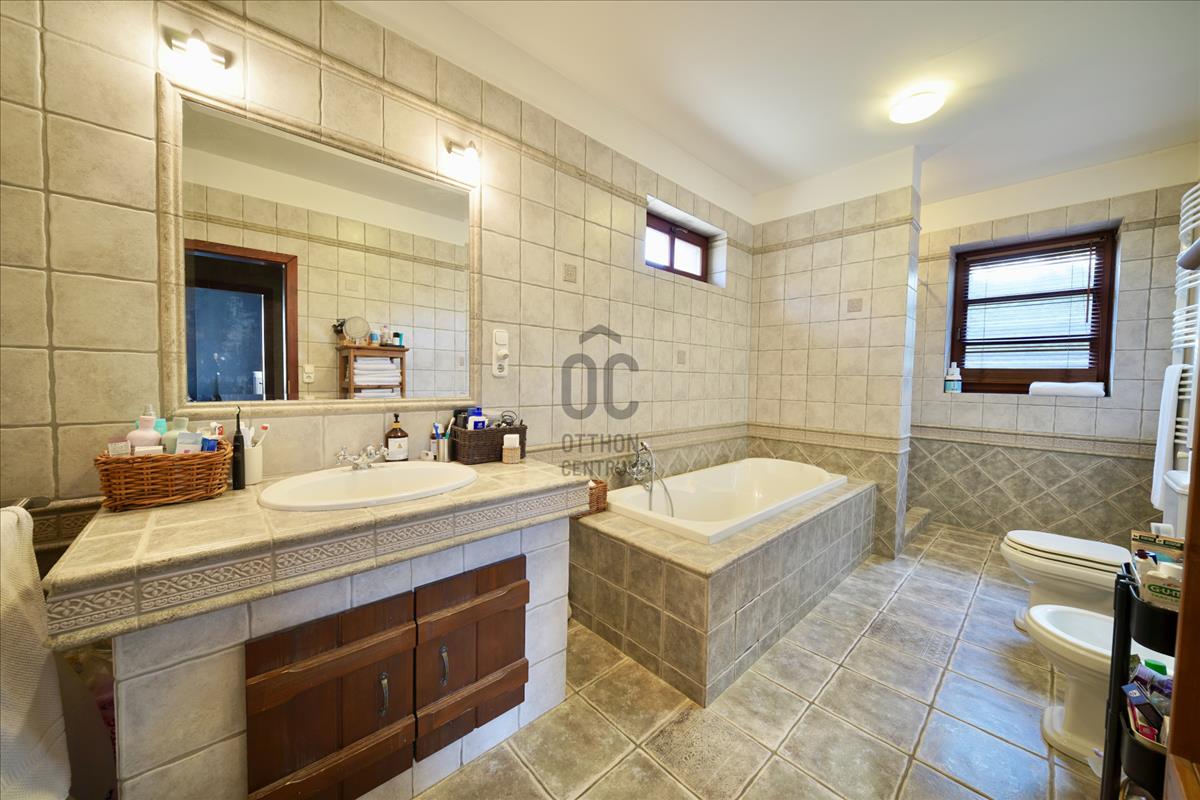 A ház földszintje teljes körűen megújult, itt kapott helyet egy modern, prémium minőségű, teljesen felszerelt konyha, bőséges tárolókapacitással és beépített hűtőszekrénnyel. Az alsó szinten padlófűtés biztosítja a komfortot, amely gázcirkóval és hőszivattyús rendszerrel, kombinált megoldásként működik. Több helyiségben egyedileg tervezett, minőségi beépített bútorok találhatók. a teljes felső szint klímatizált.