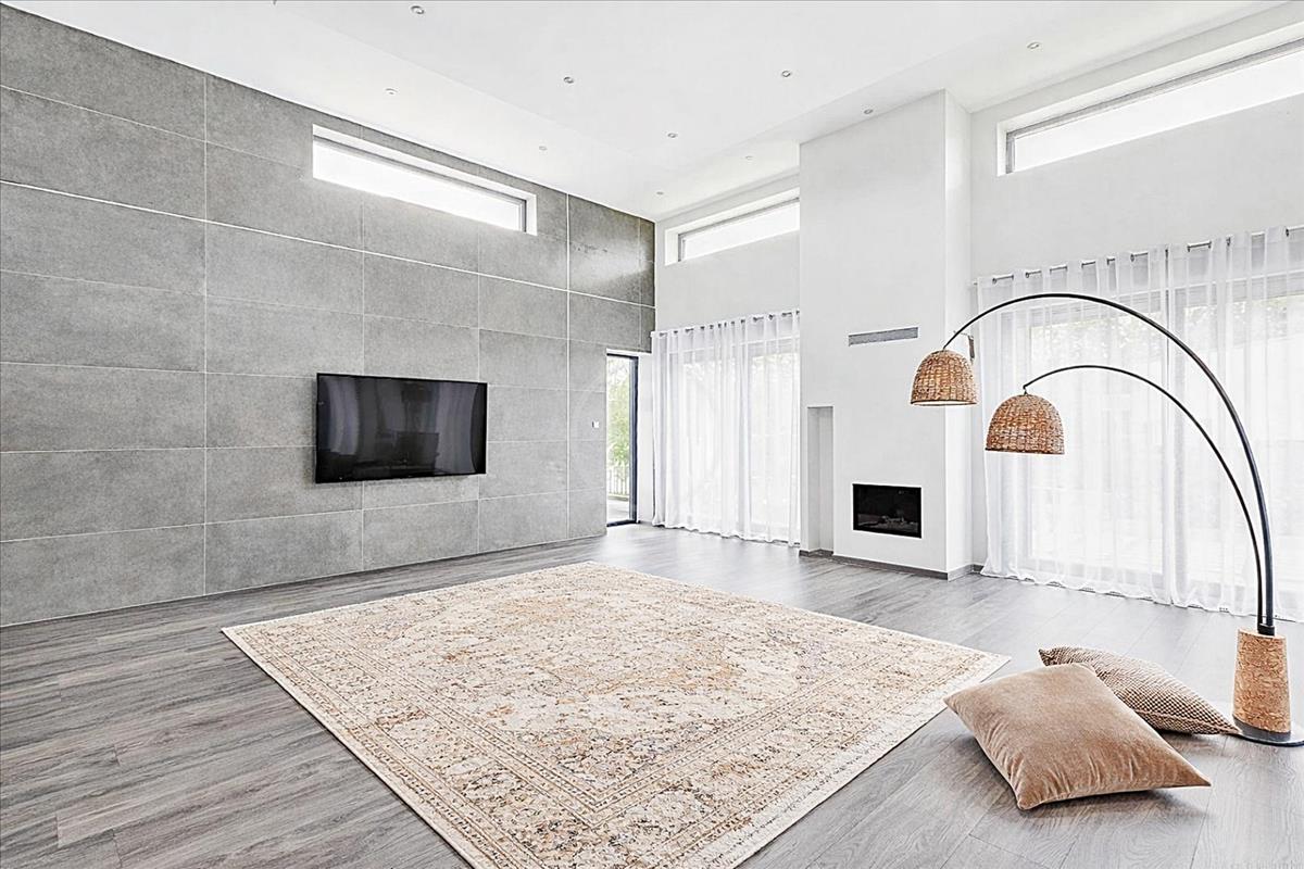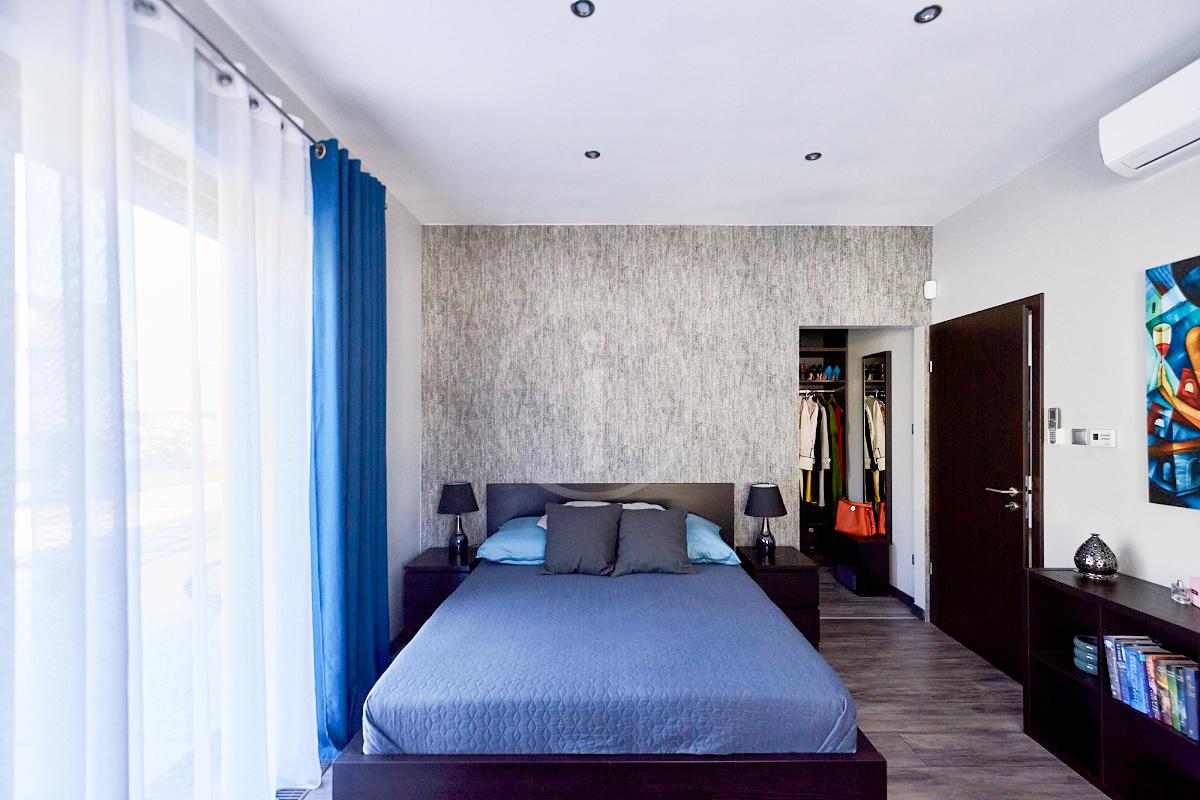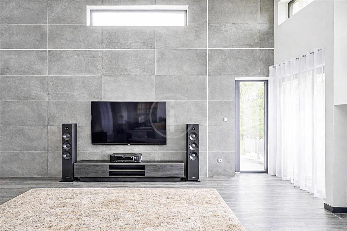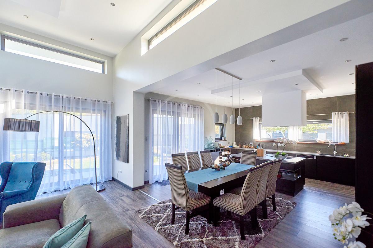 A minimál dizájn stílusú ház gépesített amerikai konyhás nappaliból (78 nm ), 3 különnyíló hálószobából, - az egyikből közvetlenül nyílik a fürdőszoba és a gardrób szoba, - 2 fürdőszobából, mosókonyhából/gépészeti helyiségből és előszobából áll.