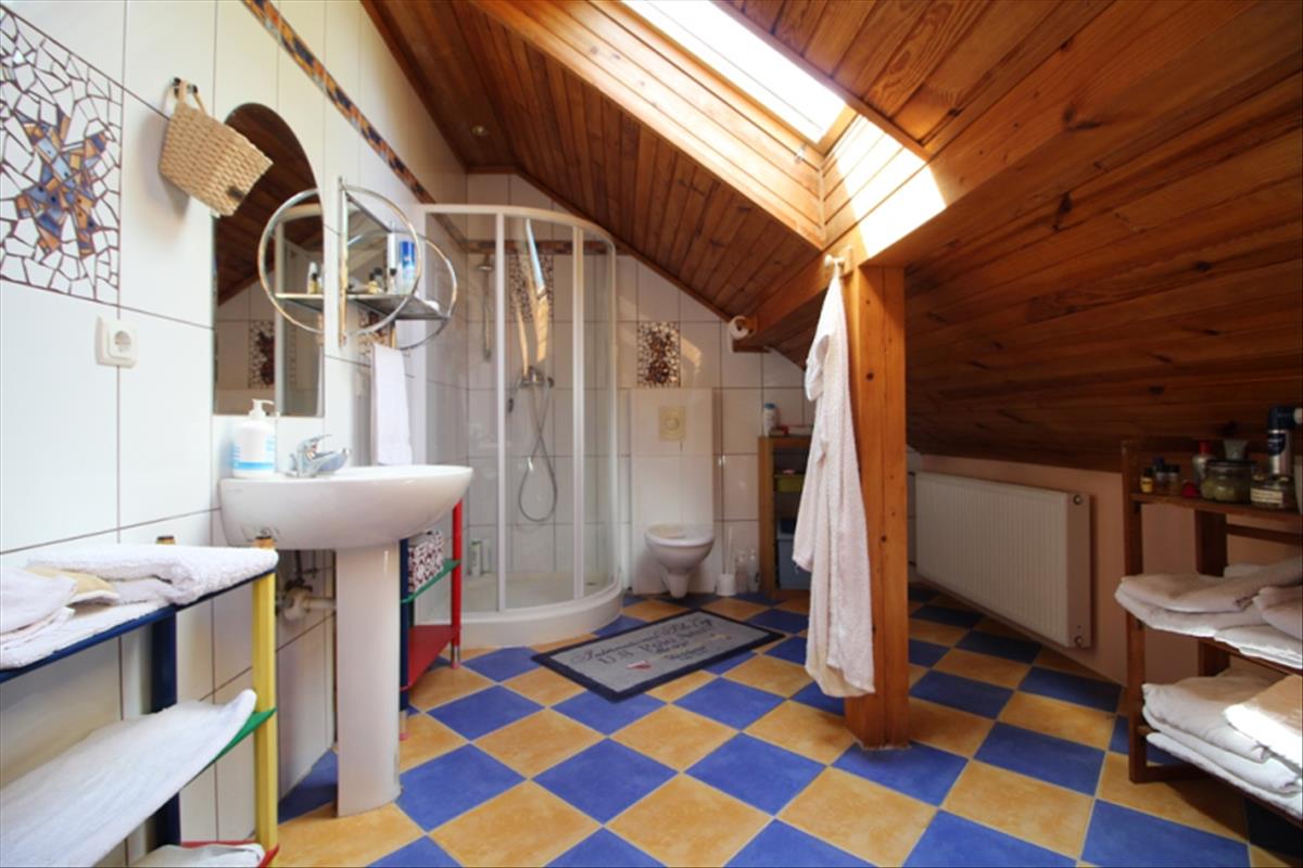 Az emeleti részen jelenleg 3 szoba, 3 gardrób szoba, egy nagy társalgó, fürdőszoba, wc található.