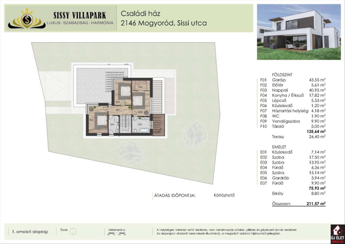 Ez az új építésű ház már elkészült Mogyoródon, a Sissy Villaparkban, azonnal KÖLTÖZHETŐ.