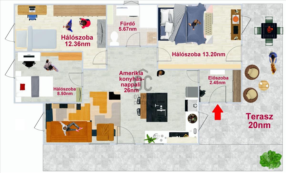 + Rendkívül jó elosztású, amerikai konyhás-nappali + 3 hálószobával rendelkezik, így akár családosok is kényelmesen elférnek.