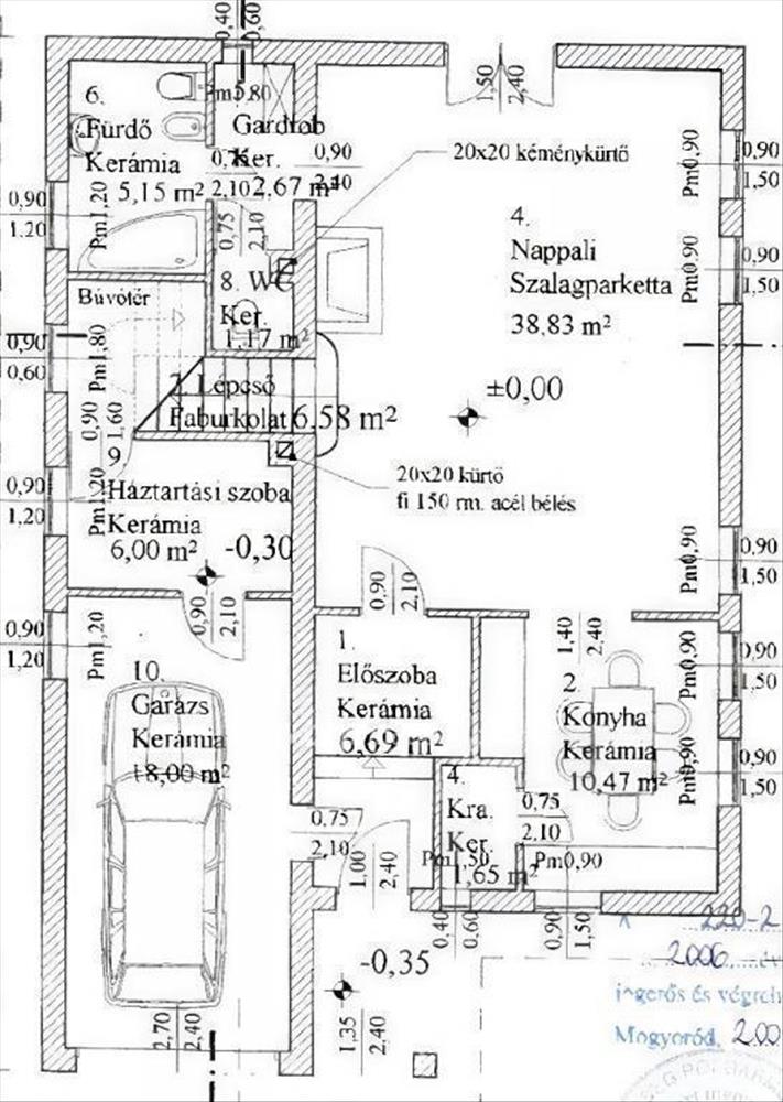 Padlófűtéses alsó szint, kondenzációs gázcirkó + kandalló.