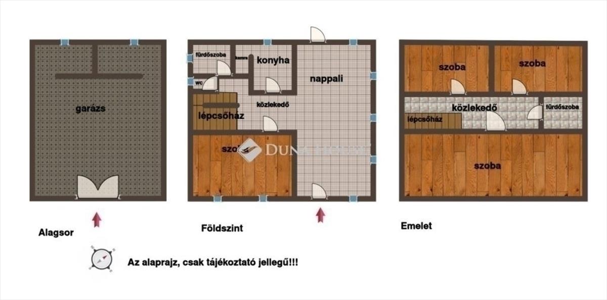 - emeleten: 3 nagy szoba( Az egyik dupla méretű, még szét is osztható. ), Fürdőszoba, közlekedő