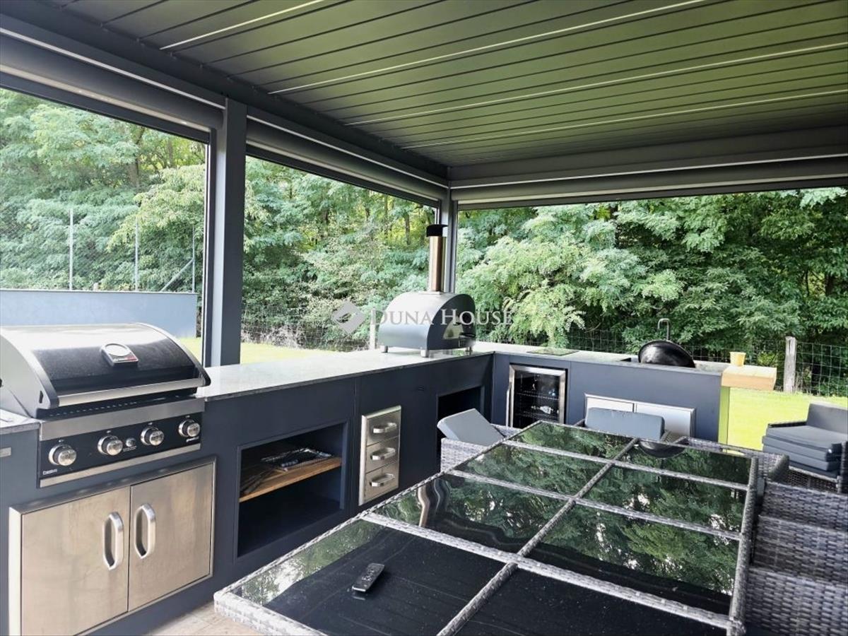 Prémium minimál villa kültéri medencével, szaunával és teljesen kész belső terekkel lake forest VILLAPARKEladó egy Budapesttől karnyújtásnyi távolságra található, zárt, őrzött luxus villaparkban álló, önálló, 416 m²-es, okosotthon-rendszerrel felszerelt családi villa 1 654 m²-es, parkosított telken, kétállásos teremgarázzsal. a nappali + 4 hálós, triplakomfortos otthon minden részlete a gondos tervezést és a kompromisszummentes anyaghasználatot tükrözi az ingatlan időközben teljes befejezést kapott, így az új tulajdonos azonnal élvezheti a prémium életérzést. Kiemelt újdonságokEmeleti, üvegfalú szauna az intim teraszon, közvetlenül a szülői lakosztályból megközelíthetően négy évszakos kikapcsolódás zöldpanorámával. Fedett kerti grillkonyha professzionális beépített gépekkel: nagyméretű gázgrill, mosogató, hűtő/fiókos tárolók, munkapult, külön pizzasütő kemence tökéletes szabadtéri vendéglátó tér. Nagyformátumú kőburkolatok és egyedi fényépítészet a reprezentatív belső terekben (dizájn LED-vonalvilágítás a márványhatású falon). Elegáns, fedett teraszok kőburkolattal, közvetlen kapcsolattal a kerthez és a medencéhez. Elrendezés & ÉletérzésA földszinti, hatalmas üvegfelületekkel megnyitott nappaliétkezőkonyha tér a fedett teraszra és a gondozott kertre tárul. Itt található a fűtött, 4×8 m-es Compass medence automata redőnyfedéssel sportoláshoz és családi pihenéshez egyaránt ideális. Az emeleti szülői lakosztály saját gardróbbal és fürdővel, valamint a szaunához nyíló privát teraszkapcsolattal rendelkezik; a további hálók külön fürdőblokkhoz csatlakoznak. Műszaki tartalom (válogatás)Loxone okosház-előkészítés és vezetékezés az egész épületbenLégtechnika: friss levegő befúvás (rekuperáció), elszívás szellőztetés ablaknyitás nélkülMennyezethűtésfűtés + padlófűtés, fujitsu hőszivattyúA++ energiahatékonyság, 40 cm hőszigetelés, 3 rétegű nyílászárókNapelem/napkollektor teljes előkészítéseKözponti porszívó csövezésElektromos zsaluziák, távirányítható LED-szalagok helyiségenkéntVízteres kandalló kiállás frisslevegő-beszívássalHörmann elektromos garázskapu, ujjlenyomatos bejárati ajtó30×50 a elektromos ellátás, EV-töltő kiállás a garázsbanNappaliban 5. 1 Házimozi kiépítés, beépített páncélszekrényKamerarendszer és riasztó előkészítés, kétállásos padlófűtött garázs400 l-es HMV-tartályMedence & KertCompass 4×8 m carbon pools medence, 70 kg teherbírású automata redőnyAutomata vízkezelés/vegyszeradagolás, távvezérelt medencevilágításHidegmeleg vizes kerti és emeleti terasz-zuhanyParkosított, intim, zöldövezeti telek, prémium burkolatok és hatalmas, fedett/nyitott teraszfelületekIkonikus luxus ikonikus környezetben azoknak, akik a modern minimalizmust, a kifinomult anyaghasználatot és a kifogástalan műszaki tartalmat keresik. Bővebb információért és a részletes, helyszíni bemutatásért várom megkeresését.Érdeklődni: Szabó Róbert, mobil: +36-20-52-000-80