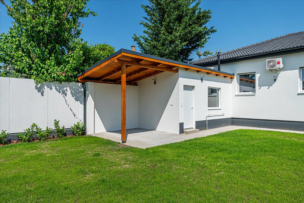 A különálló, fűthető melléképület (12, 5 m²) ideális lehet dolgozószobának, hobbiszobának vagy vendéglaknak is.