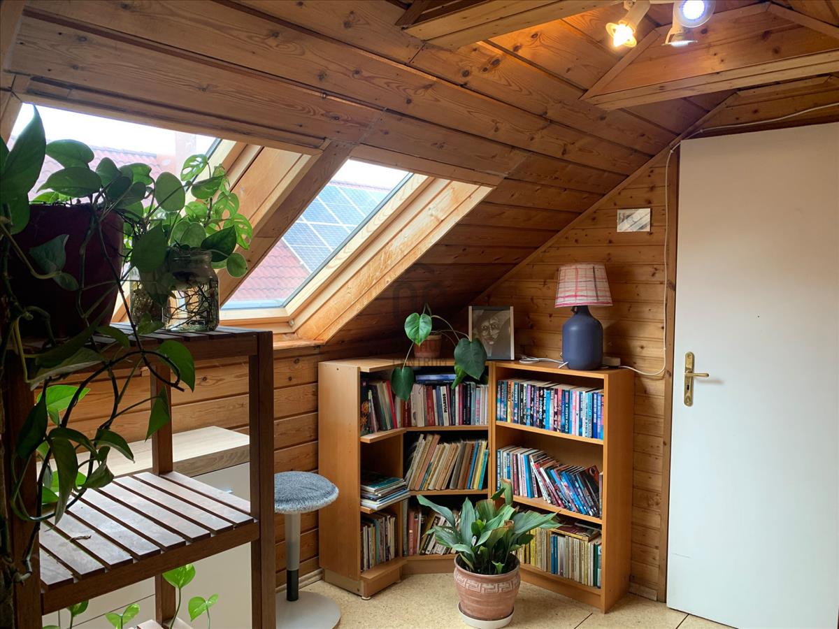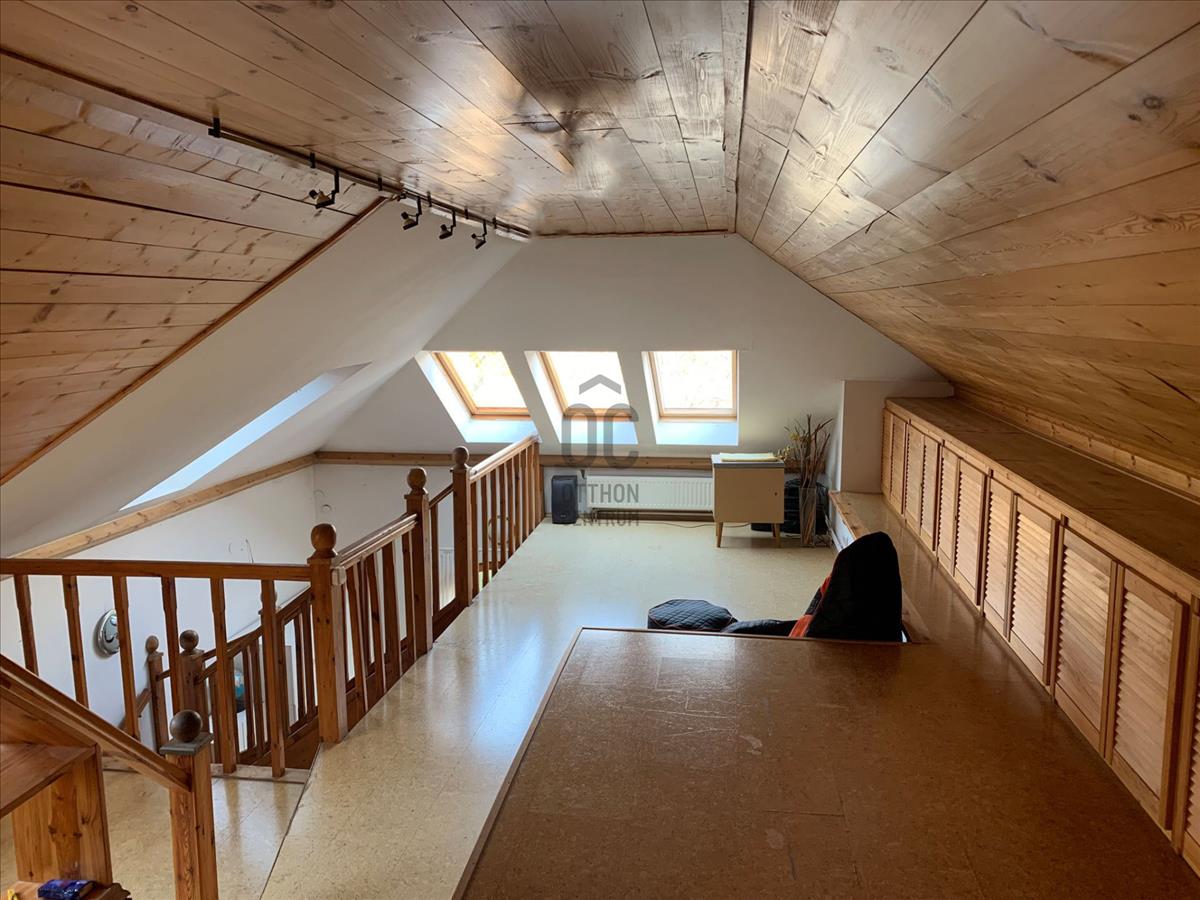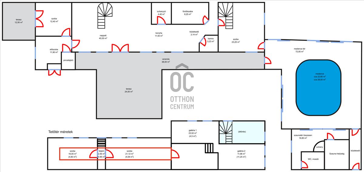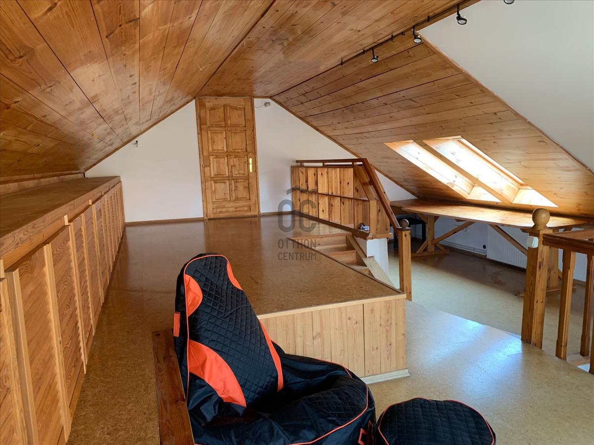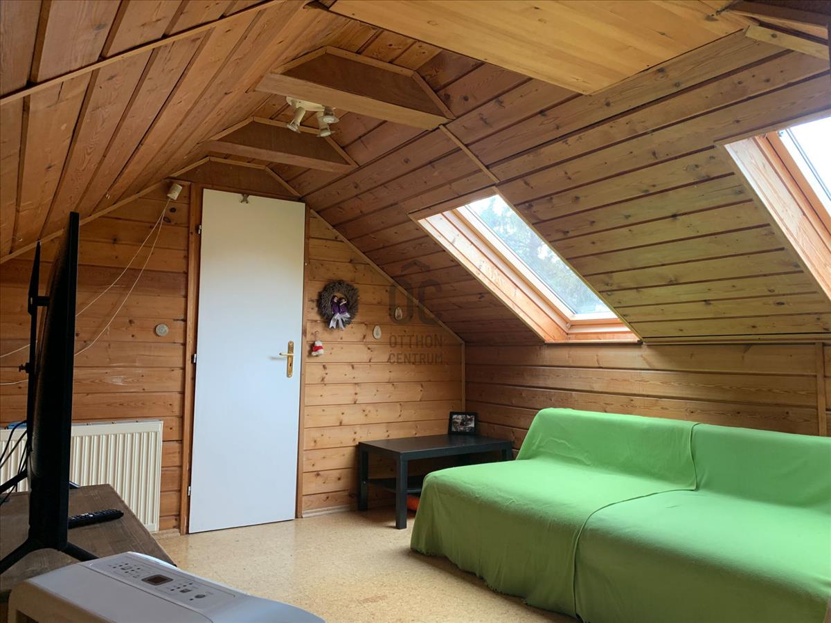 A tetőtér 75 m², ebből 25 m² a teljes belmagasságú rész. Itt a két hálószoba mellett egy kb. 30 M²-es galéria biztosít kényelmes, sokoldalúan használható életteret.