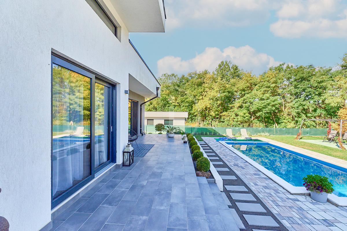 EXKLUZÍV VILLAPARK! GÉPESÍTETT, BERENDEZETT, MEDENCÉS LUXUS HÁZ!