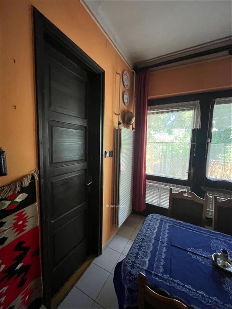 Alsó szinten előszoba, közlekedő, konyha, kamra, nappali-étkező, mosdó. Két kijárat nyílik az udvarra és a teraszra. Fa lépcsőfeljáró vezet az emeletre és a tetőtérbe.