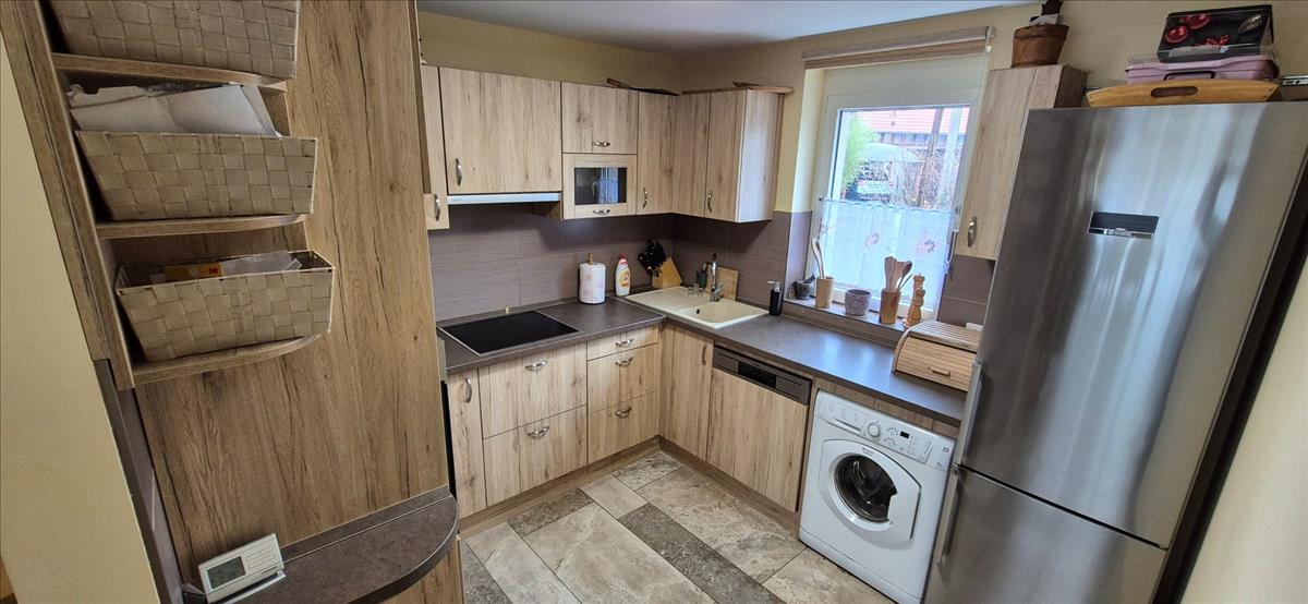 Az ingatlan jellemzői: a nagyobb, 100 m²-es, 2019-ben épült, 15 centiméteres szigeteléssel ellátott tégla szerkezetű épület alsó szintjén egy világos, tágas nappali, egy légtérben lévő gépiesített konyhával, előszoba, fürdőszoba és külön wc kapott helyet. Az emeleten fürdőszoba, wc, gardrób, tároló és jelenleg két hálószoba található, azonban ez bővíthető.