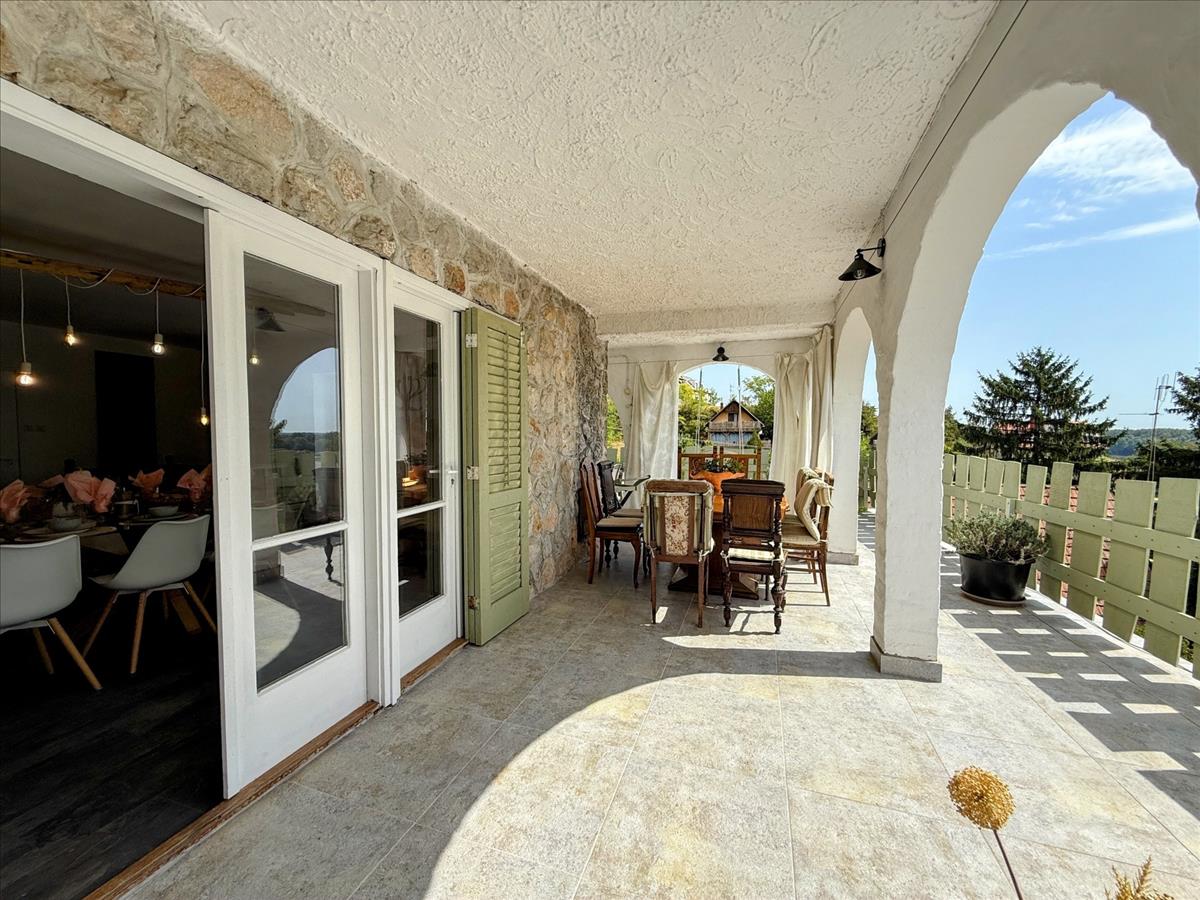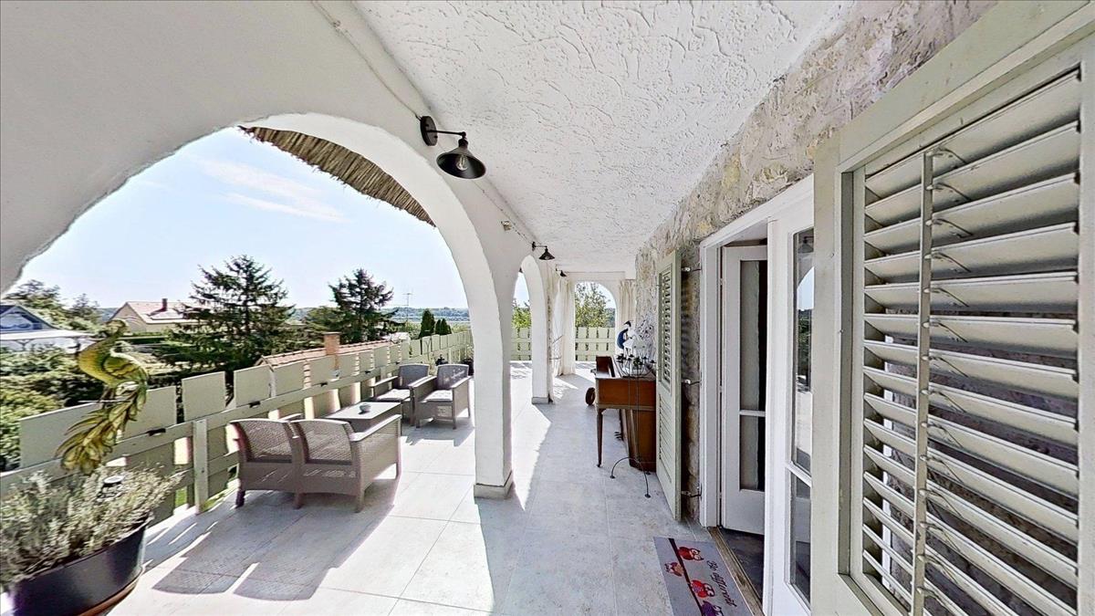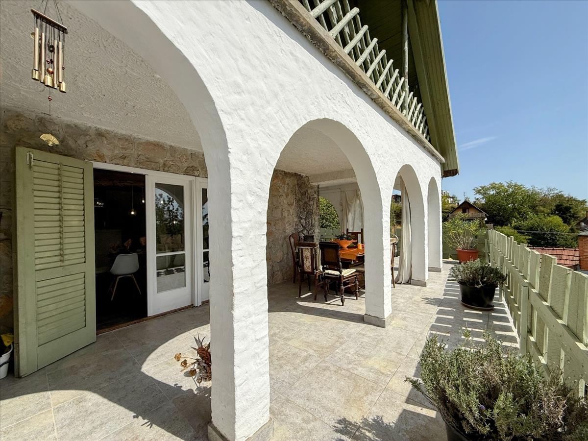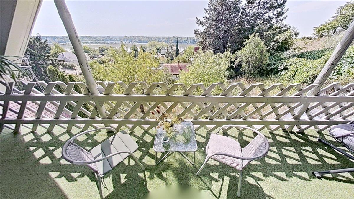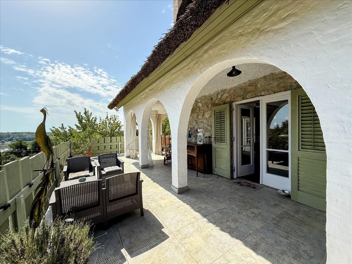 A ház a Duna-parttól két perc sétára helyezkedik el, egy magaslaton, ahonnan csodás panoráma nyílik a folyóra és a környékre egyaránt.
