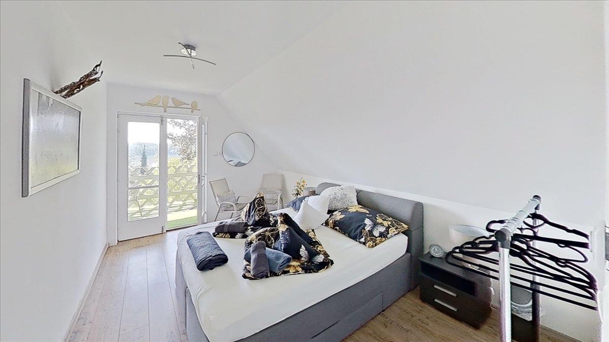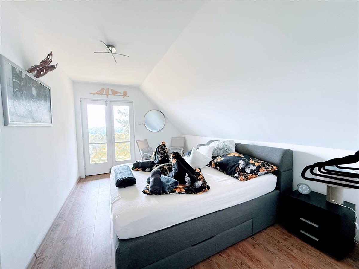 A felső szinten is helyett kapott egy intim erkély, amire mindkét fenti hálóból ki lehet jutni.