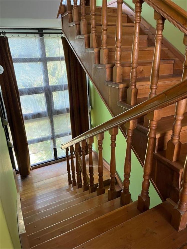 Alsó szinten előszoba, közlekedő, konyha, kamra, nappali-étkező, mosdó. Két kijárat nyílik az udvarra és a teraszra. Fa lépcsőfeljáró vezet az emeletre és a tetőtérbe.