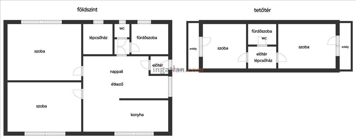 O Tetőtér: két hálószoba saját erkéllyel és egy fürdőszoba WC-vel.