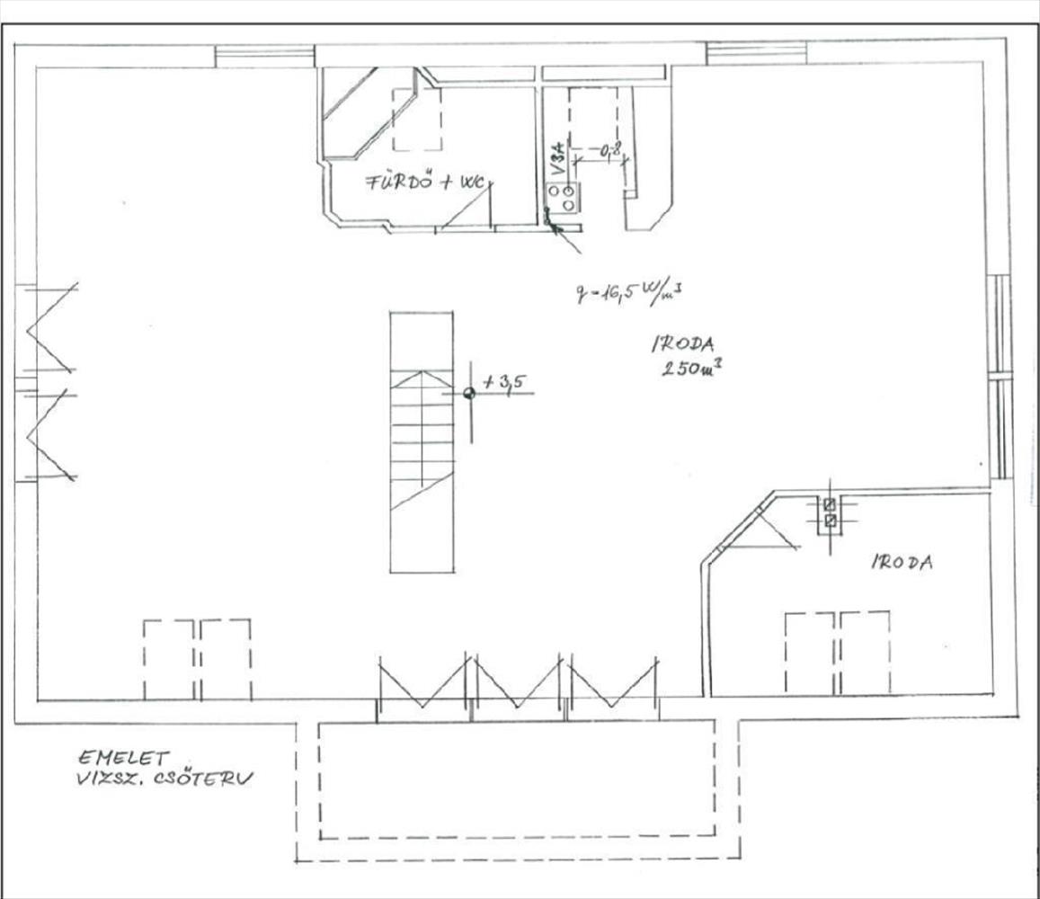A ház emeletén penthouse jellegű, szép, tágas, napfényes lakrész van, ahol nappali/étkező, irodahelyiség, 1 hálószoba, fürdőszoba/zuhanyzó/WC, konyha és erkély található.