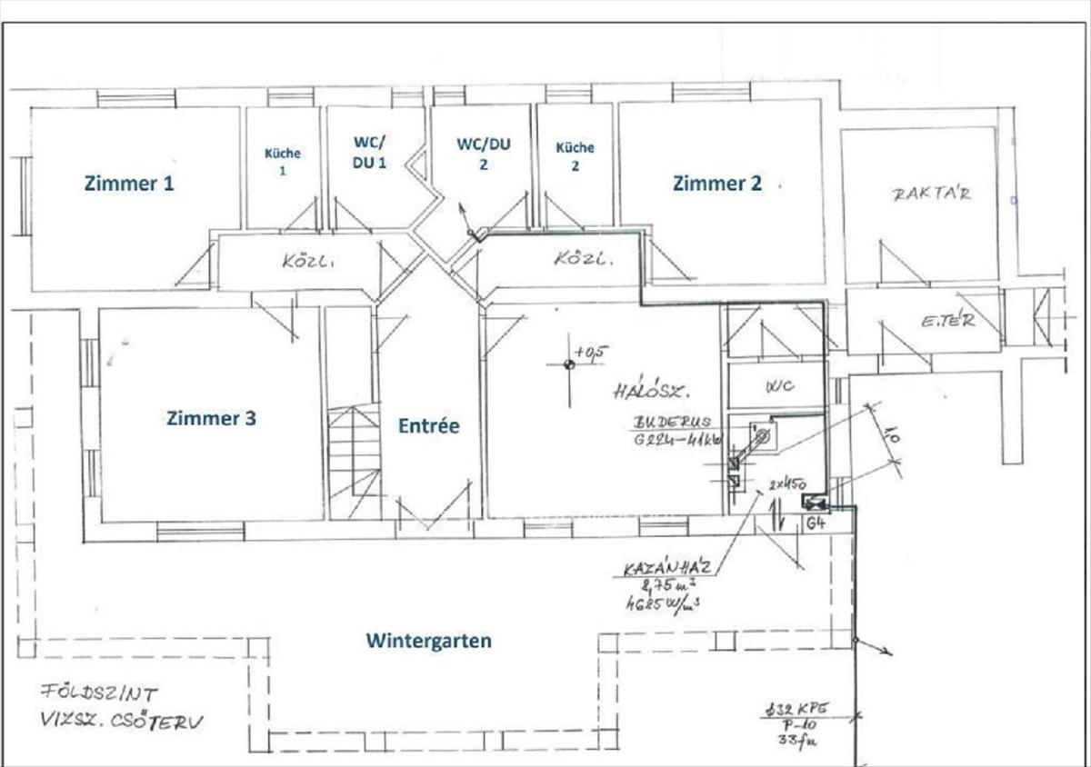 3. Egy különálló, régi építésű, 70 nm -es, 2 szobás, zuhanyzó/WC-s vendégház. Az épülethez tartozik egy dupla beállásos garázs is.