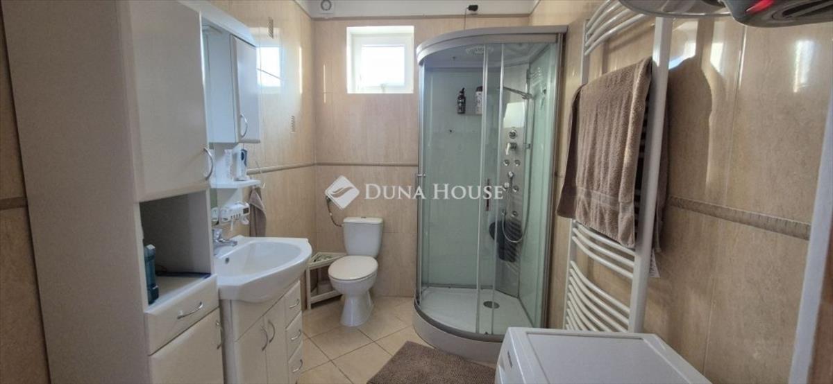 Minden helyiségben külön vezérelhető termosztáttal rendelkező elektromos infra padló fűtés is található, ezen a szinten 2 hűtő-fűtő klíma is tudja a levegő hőmérsékletét temperálni. Fürdőszobában hidromasszázs zuhanykabin 2 éve lett telepítve.