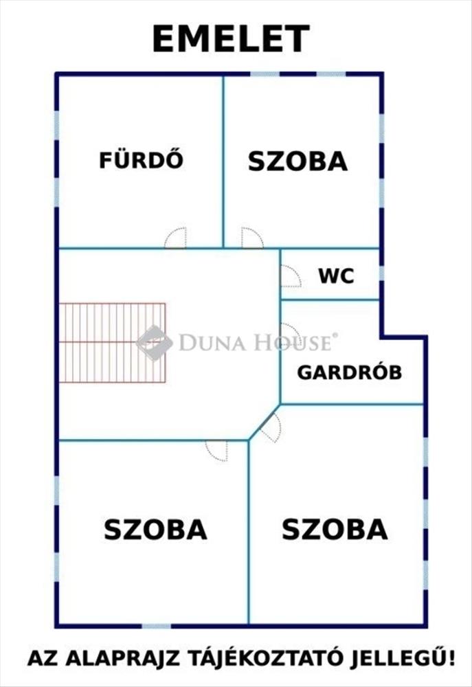 emeleten: három hálószoba, gardrób, fürdő WC-vel és egy külön WC.