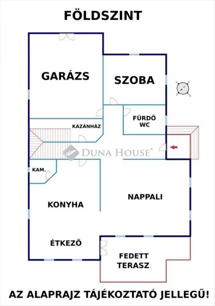 Földszint: a ház központja egy hatalmas, 50 nm-es amerikai-konyhás nappali, amely ideális a családi összejövetelekhez és a baráti társaság fogadására. Ezen a szinten található még egy hálószoba, fürdő WC-vel, kamra, előszoba, kazánház és egy kényelmes garázs.
