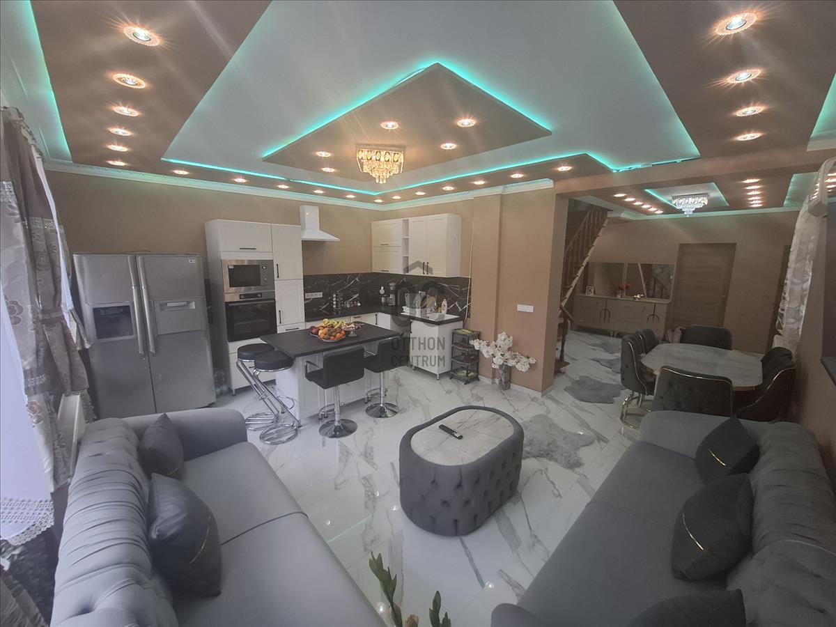Képzeld el, hogy egy igazán különleges otthon vár rád Monoron, Pest vármegyében, ahol a család minden tagja megtalálja a számításait! Ez a 123, 7 nm-es, frissen felújított ház tökéletes választás családosok számára, akik a kényelmet és a modern életstílust keresik. Az 502 nm-es telek lehetőséget ad arra, hogy gyönyörű kertet alakíts ki, ahol a gyerekek biztonságosan játszhatnak, miközben te pihenhetsz a 15 nm-es teraszon, vagy élvezheted a szép kilátást az erkélyről, amely 5, 52 nm-es. a házban négy tágas szoba található, amelyek világosak és barátságosak. a két fürdőszoba garantálja, hogy soha nem kell várakoznod a reggeli készülődés során. Az amerikai konyhás, konyhaszigetes elrendezés nemcsak praktikus, hanem a családi összejövetelek középpontja is lehet. a modern led hangulatvilágítás pedig feldobja az estéket, és hangulatos légkört teremt. a környék ellátottsága kiváló, a közlekedési csomópont közelében helyezkedik el, így a kitűnő közlekedésnek köszönhetően könnyedén elérheted a város főbb pontjait. a helyi boltok, iskolák és óvodák mind pár perces távolságra találhatók, így minden szükséges szolgáltatás kéznél van. Ez a tehermentes ingatlan nemcsak a kényelmet, hanem a modern életstílust is képviseli. a vegyes fűtés és a klíma biztosítja, hogy minden évszakban kellemes legyen a hőmérséklet a lakásban. a ház állapota jó, így azonnal birtokba veheted, és élvezheted az új otthonod adta lehetőségeket.