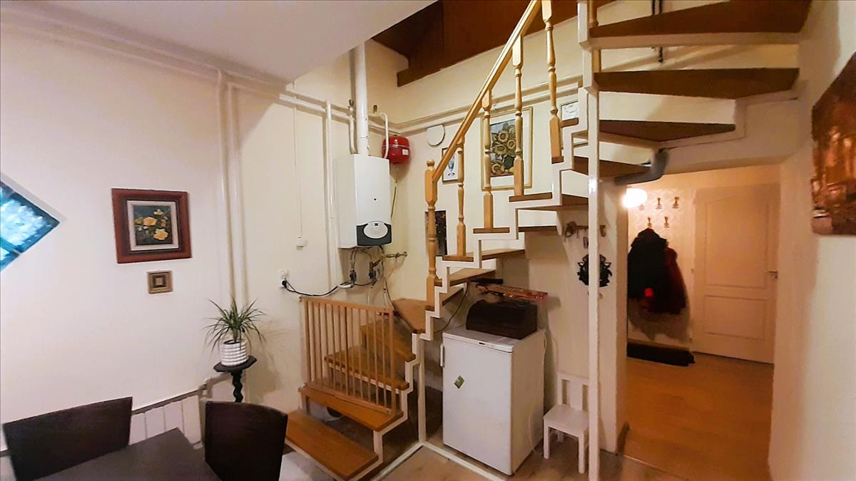 Amikor beléptem az ingatlanba, egyszerűen magával ragadott az otthonosság érzése, kellemes hangulat és kisugárzása. Ide ugyanis nem hallatszik be a város zaja, zavartalanul lehet napközben is pihenni, dolgozni vagy vizsgákra készülni. a ház tetőtere ugyan kisebb alapterületű, tárolásra használják jelenleg, de kialakítható egy-két személy részére egy háló, hogy a jól elvégzett munka vagy baráti összejövetel után ott lehessen aludni. Az étkező a ház központi szerepét tölti be, igazán hangulatos, kényelmes. Engem teljesen lenyűgözött a ház belsejének egyedi mivolta, hangulata és a környezete. Nekem nagyon tetszik ez a két ház, hiszen két generáció egymás közvetlen szomszédságában, de mégis külön élettérben élhet. Az autónkat a belső udvaron, fából épült, fedett kocsibeállóban tudjuk elhelyezni, amelynek értéke a vételárba beletartozik! Ez az otthon nemcsak a jó közérzetet és csendes környezetet biztosítja, de az energiaköltségeket is minimalizálja, hiszen 10 cm-es szigetelést is kapott. Az egész ingatlan a hatalmas telkével az a hely, ahol az álmok valóra válnak – Építse fel új életét itt!