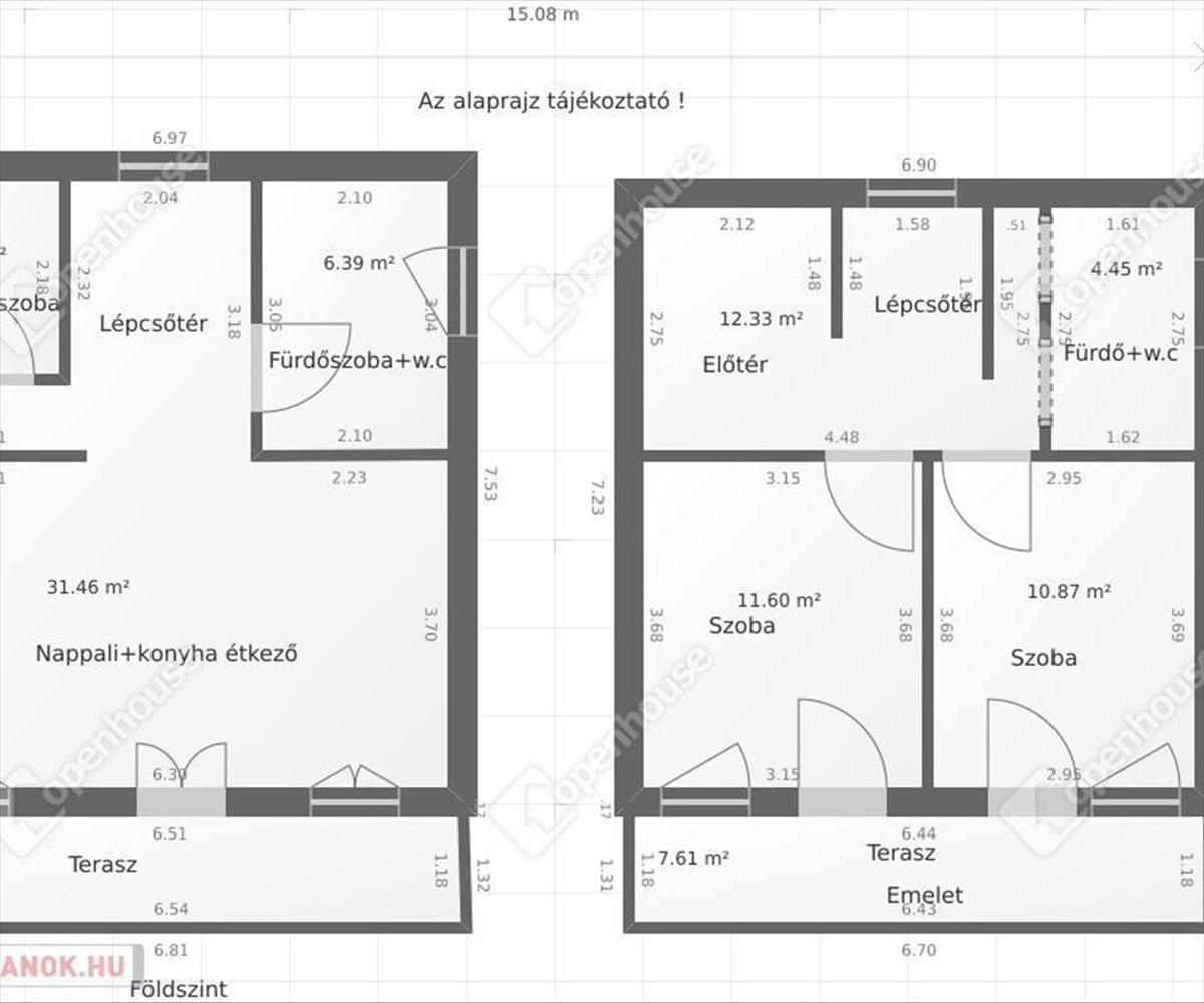 Kialakítása :földszinten tágas nappali konyha étkezővel, fürdőszoba, dolgozószoba.