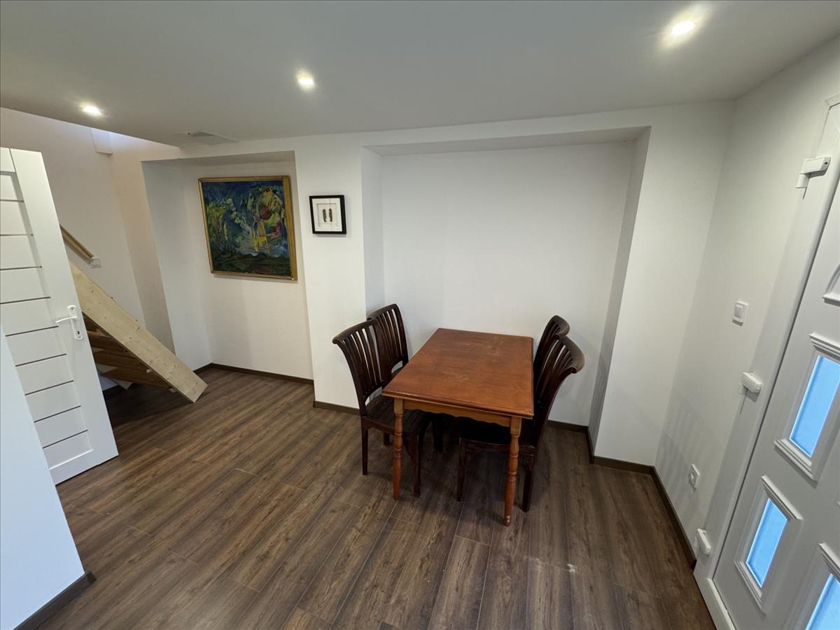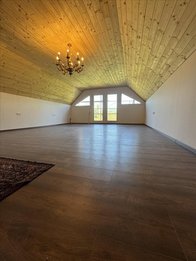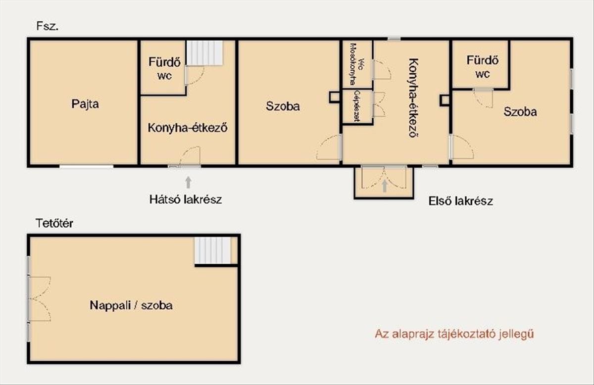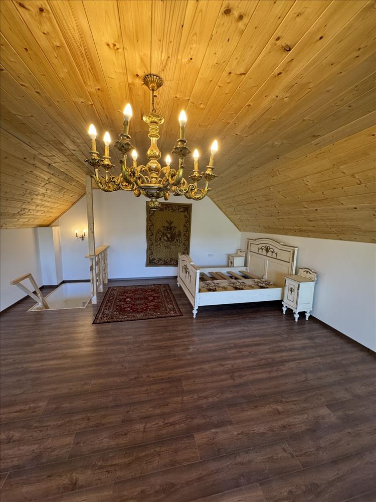 A hátsó lakrész (65nm -es) kétszintes: alul egy tágas konyha-étkező található ill. a fürdőszoba, az emeleten egy nagy szoba mely a pajta felett is elhúzódik. a szoba ablakából gyönyörű panoráma nyílik a környező hegyekre. a fűtés itt elektromos radiátorokkal ill. Hűtő-fűtő klímával megoldható (kiállások adottak).