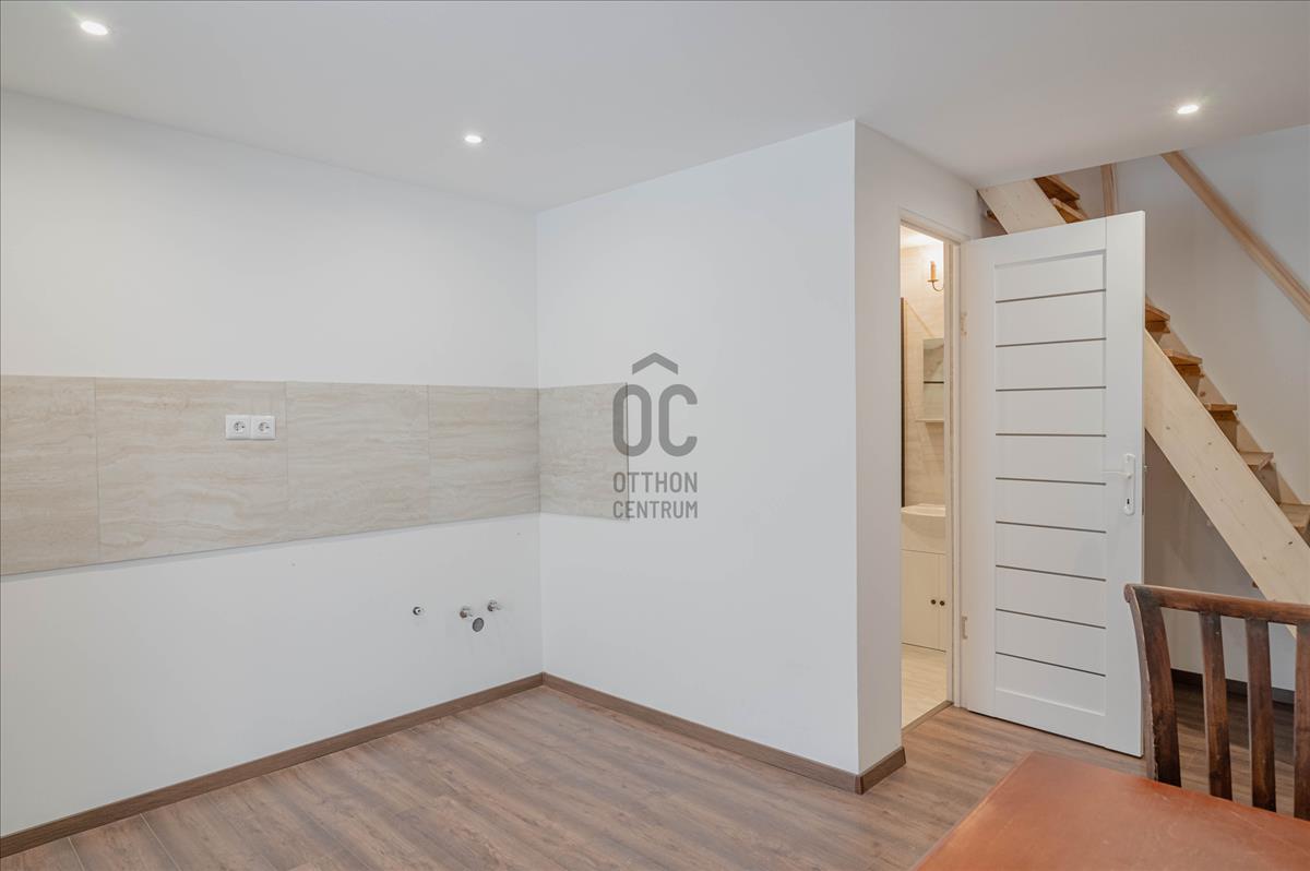 - Alsó szinten konyha-étkező és fürdő-WC, a tetőtérben pedig egy panorámás, világos nappali, amely tökéletes élettér vagy vendégtér